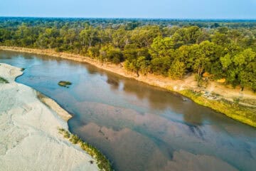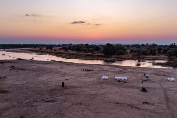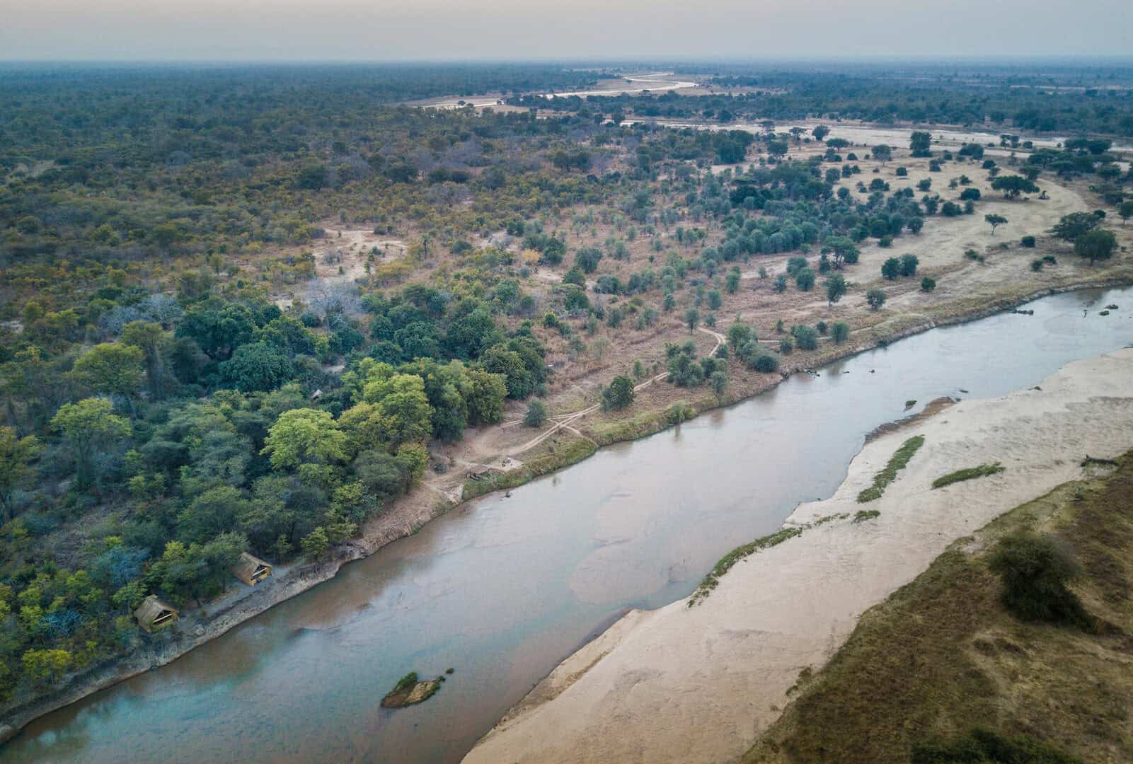 Mwaleshi Camp is a 40-minute flight from Mfuwe Airport in the vast wilderness of North Luangwa National Park. The camp is tucked away in a scenic bend of the Mwaleshi River, 10 kilometers upstream of the confluence with the Luangwa River.