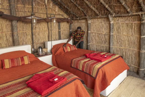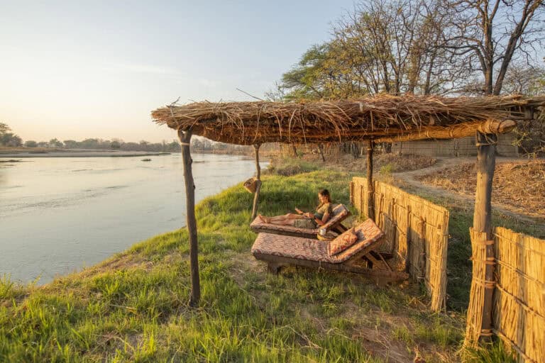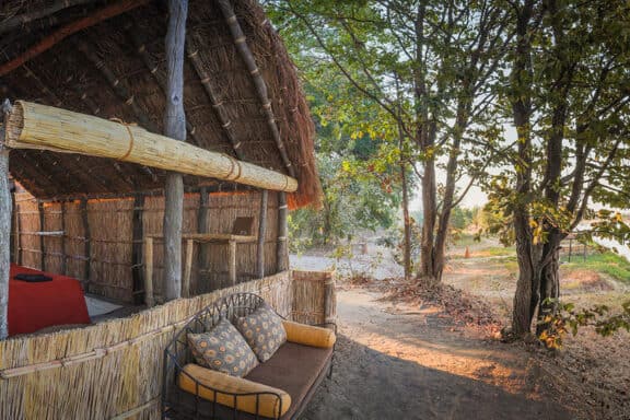 The camp provides a genuine sense of solitude and seclusion, with only four thatched chalets rebuilt annually from natural materials, en suite bathrooms open to the stars, and uninterrupted views of the spectacular Mwaleshi River. Life in camp is relaxing yet refreshingly simple.