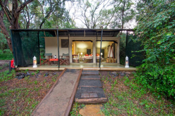 Deep within a riverine forest minutes from Jomo Kenyatta Airport, Wilson Airport and Nairobi City is a true wilderness experience. It is the first accommodation of any sort to be allowed in this unique safari destination. The Nairobi Tented Camp is the only camp in the Nairobi National Park. The Nairobi National Park is a unique ecosystem by being the only protected area in the world close to a capital city. The park is located only 7 km from Nairobi city centre.