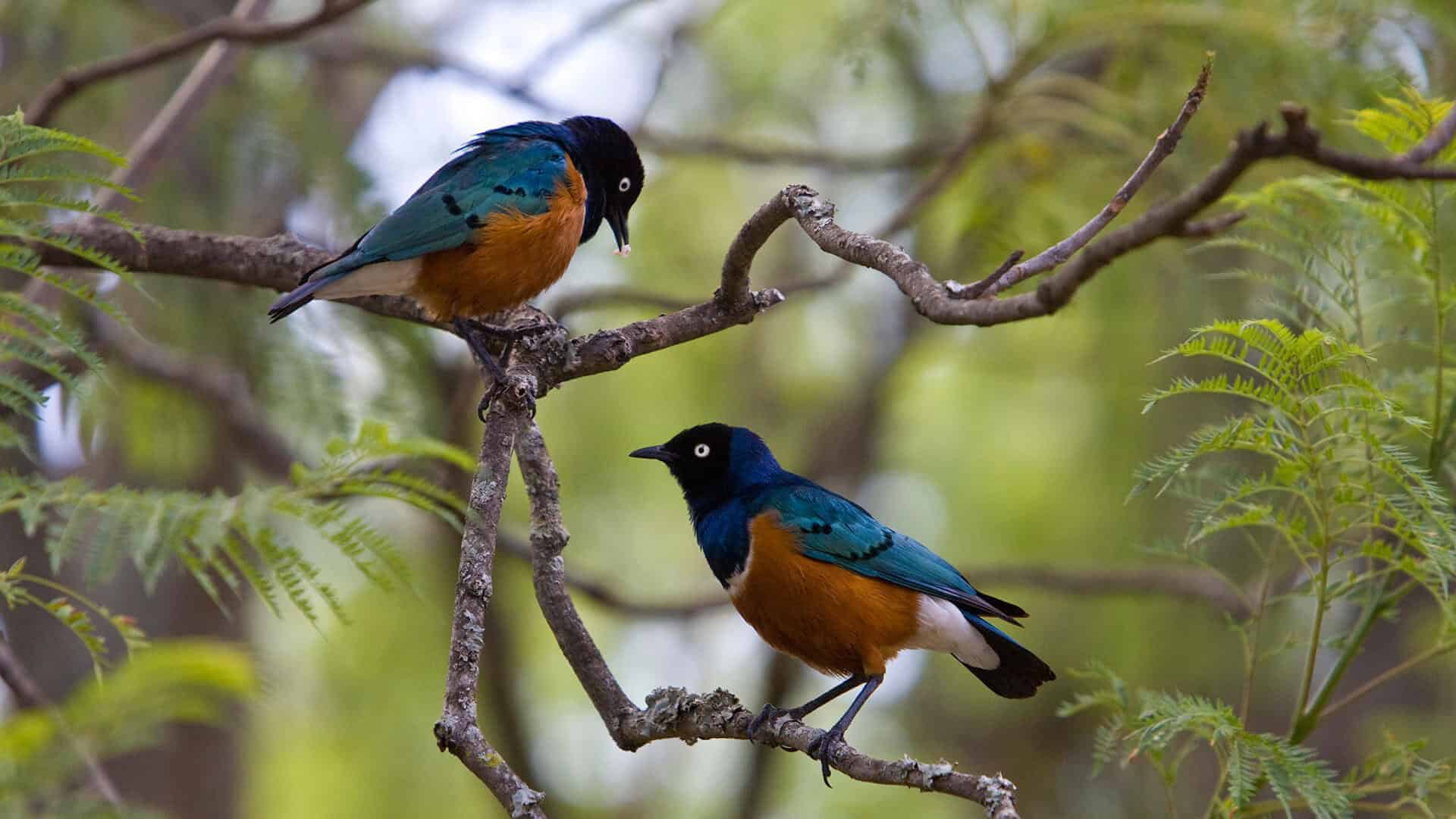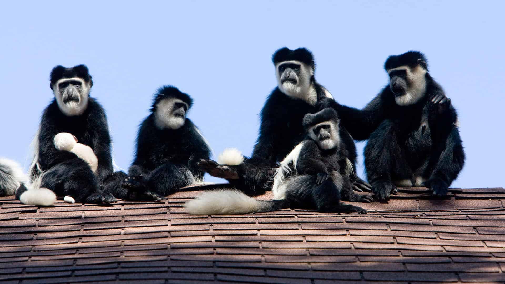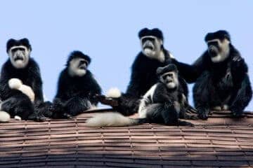 Monkeys play on the lawns and different species of birds chip in the trees.