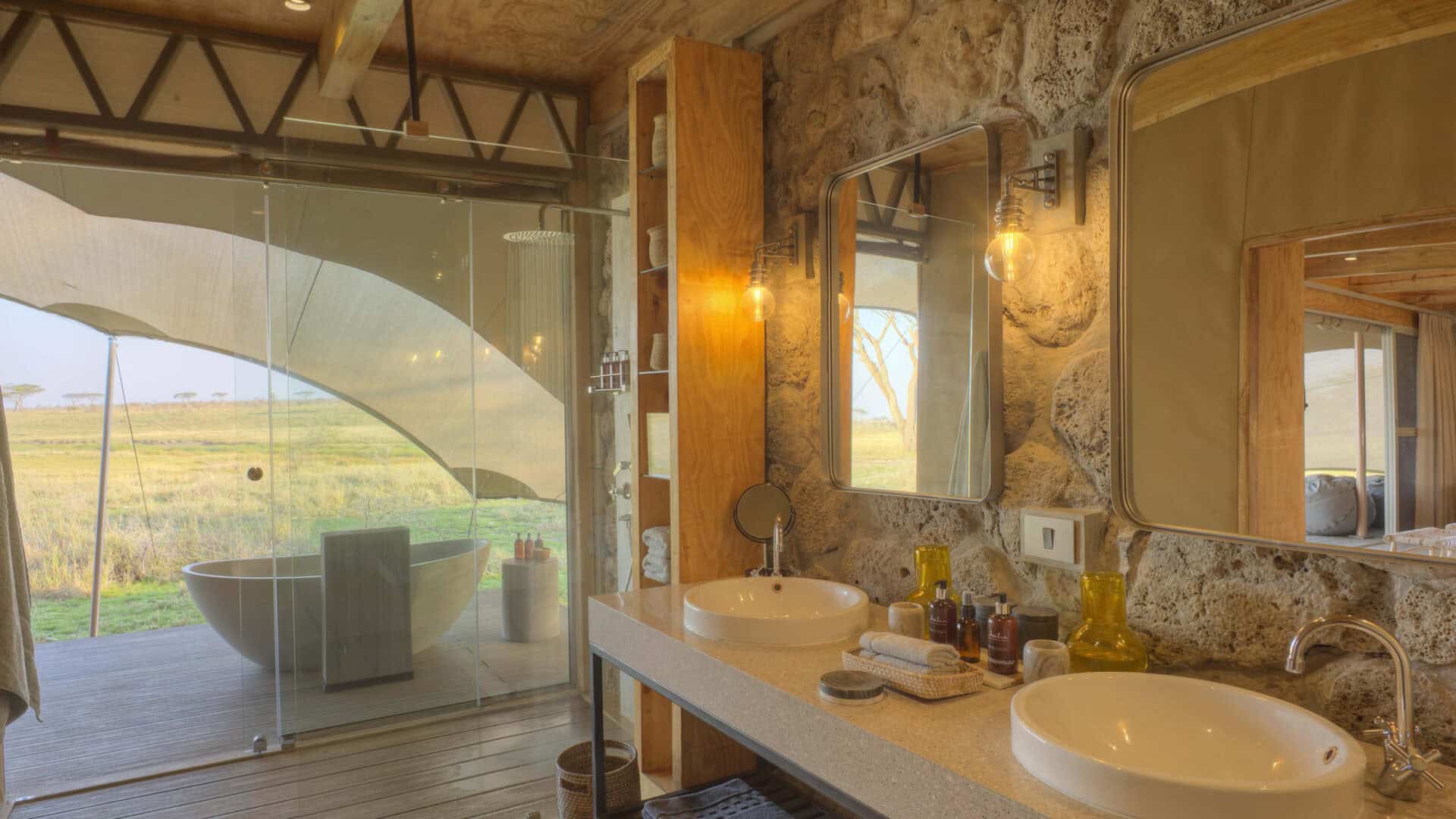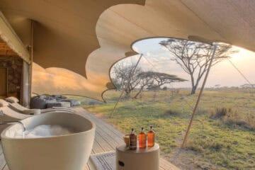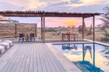 Set deep in the eastern Serengeti, Namiri Plains lies in one of the most remote corners of the park, where endless grasslands stretch out under vast skies. The camp has a small, intimate feel, with just eleven tented suites designed for spacious indoor–outdoor living.