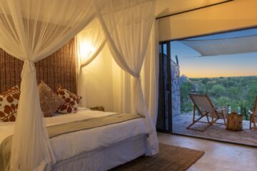 The main area overlooks a waterhole and a large dam, which wildlife frequents throughout the day. There is also a natural swimming pool with grand views over the plains. A separate outside dining area is located at the pool, which allows for alternative dining with views over the plains and easy access to the pool. Complimentary WIFI is available in the main area.