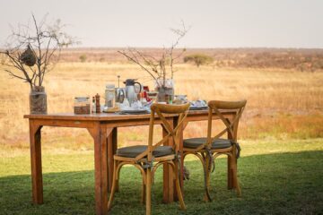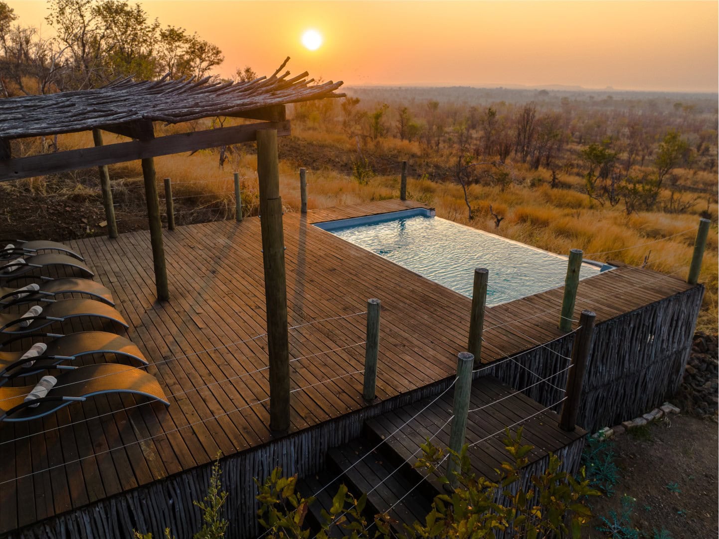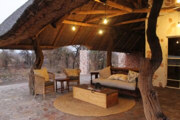 The main area overlooks a waterhole and a large dam, which wildlife frequents throughout the day. There is also a natural swimming pool with grand views over the plains. A separate outside dining area is located at the pool, which allows for alternative dining with views over the plains and easy access to the pool. Complimentary WIFI is available in the main area.