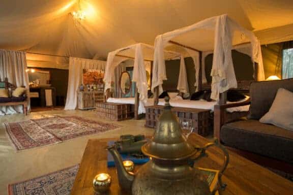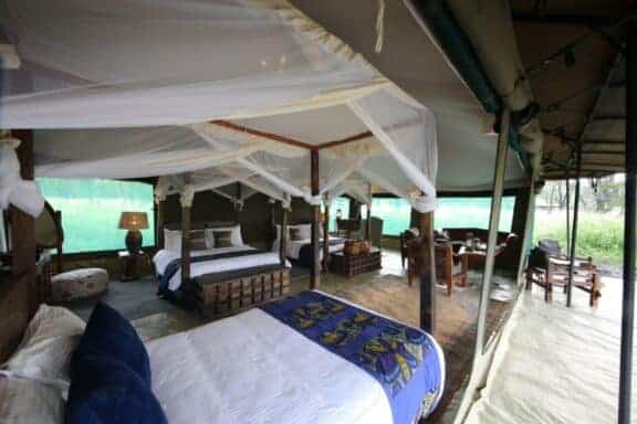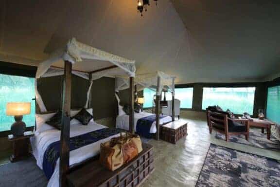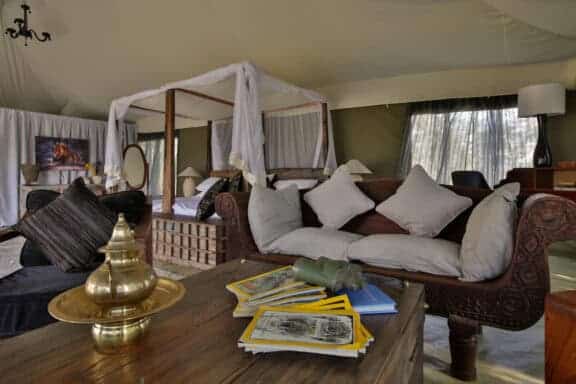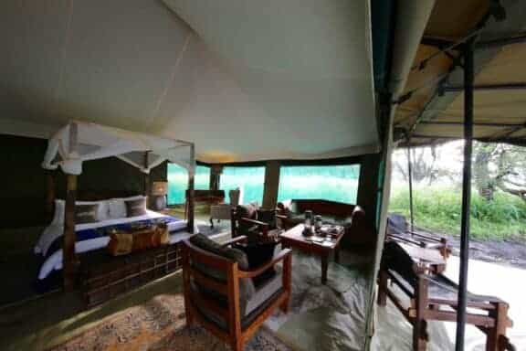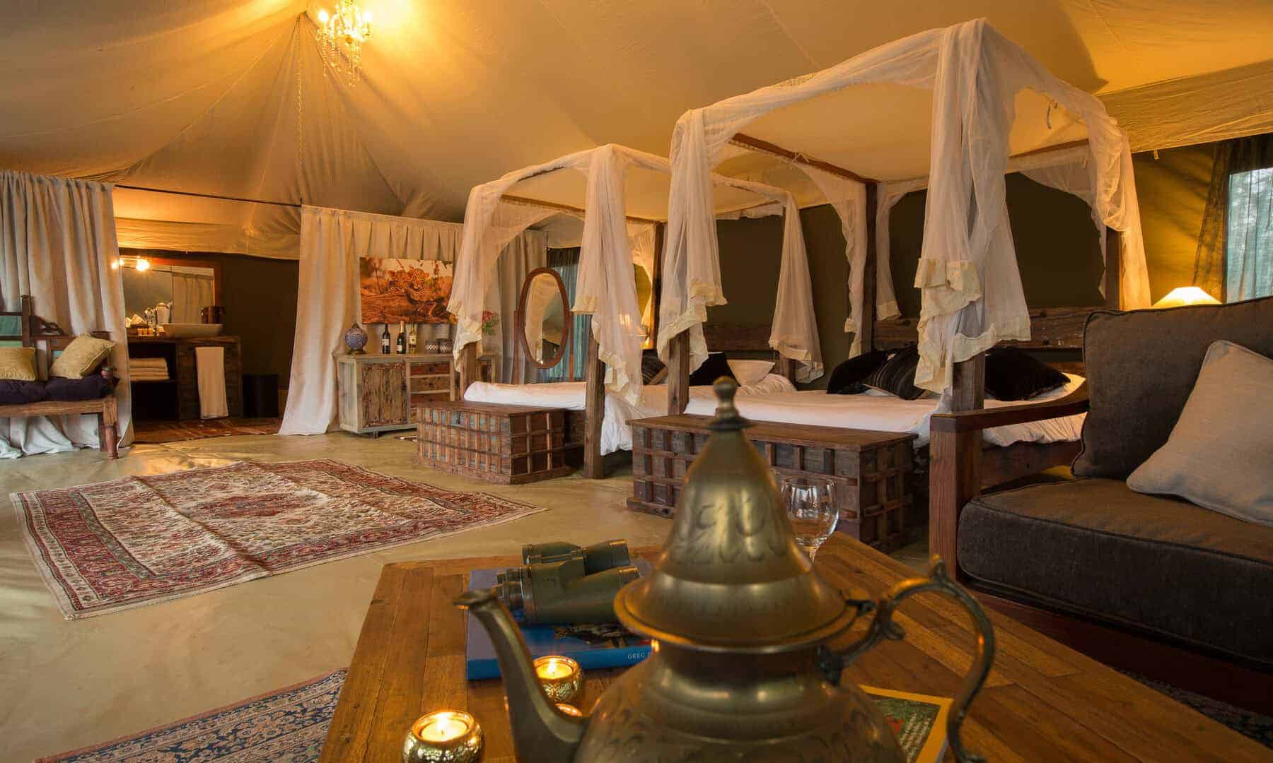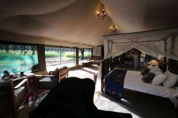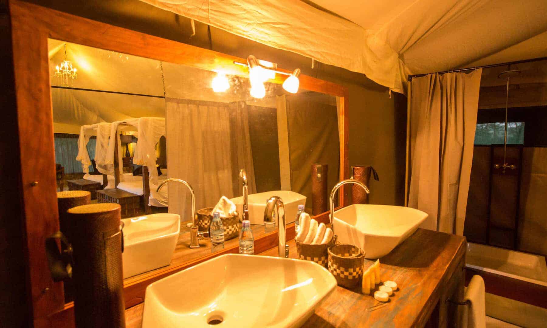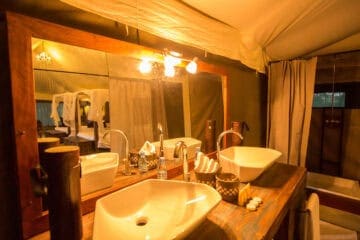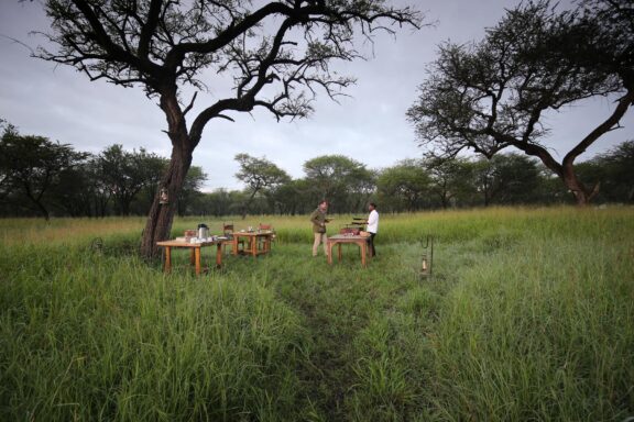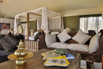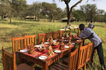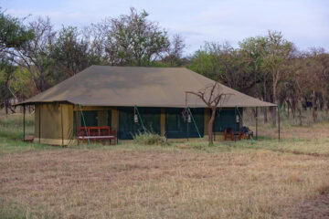 Naona Moru Camp offers eleven tented suites in a quiet corner south-west of central Serengeti. It's location is a natural alcove, it is protected with lush vegetation, but with a small open plain for game watching a stone' throw away. It is also in good distance for central Serengeti game driving, and also the wildlife-filled habitats around the Moru Kopjes. Combine crisp white sheets, gentle Serengeti breezes, running hot water, attractive neurtal decor with a pop of colour, comfortable sitting area, Victorian desk to record adventures, WI-FI and an efficient service – this is how wild elegance is served. Wash off the 'safari powder' in the large shower recess or relax outside the tent to hear the sounds of the wild. Located on an elevated viewing point beside the famous Moru Kopjes, this tented camp allows for drive in and game package clients to explore the resident and migratory wild game all year round. The landscape pans from the great southern plains of the Serengeti into the central hub of the most famous national park in Africa, close to Seronera Airstrip. The tented suites cater for honeymooners with private bush dinners, a small group of friends and even families with large tents to place bedding for two adults and up to three children.
