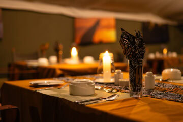 A small plain in front of the camp leads to a tributary of the Musabi River, attracting resident wildlife and migration herds. The endangered Black Rhino is also found here, protected by ranger patrols. Evenings are spent by the campfire under African skies.