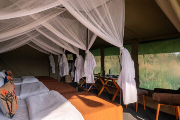 Designed for an authentic and immersive experience, the camp combines adventure with comfort, complemented by solar lighting and thoughtful details reflecting the Serengeti’s beauty; perfect for a large family or small group of friends.