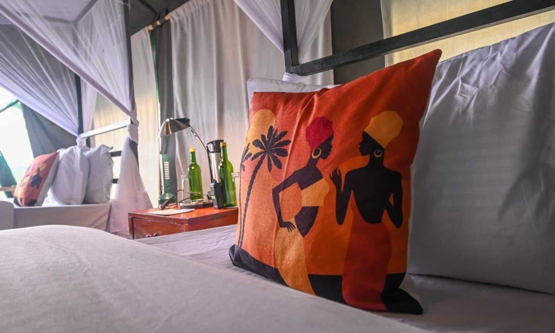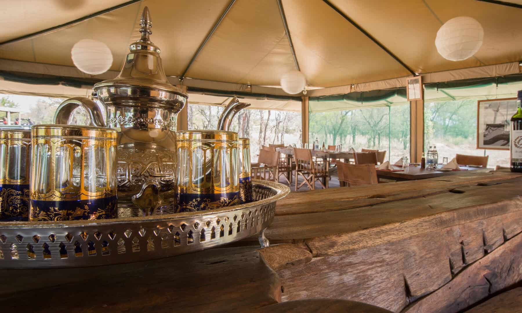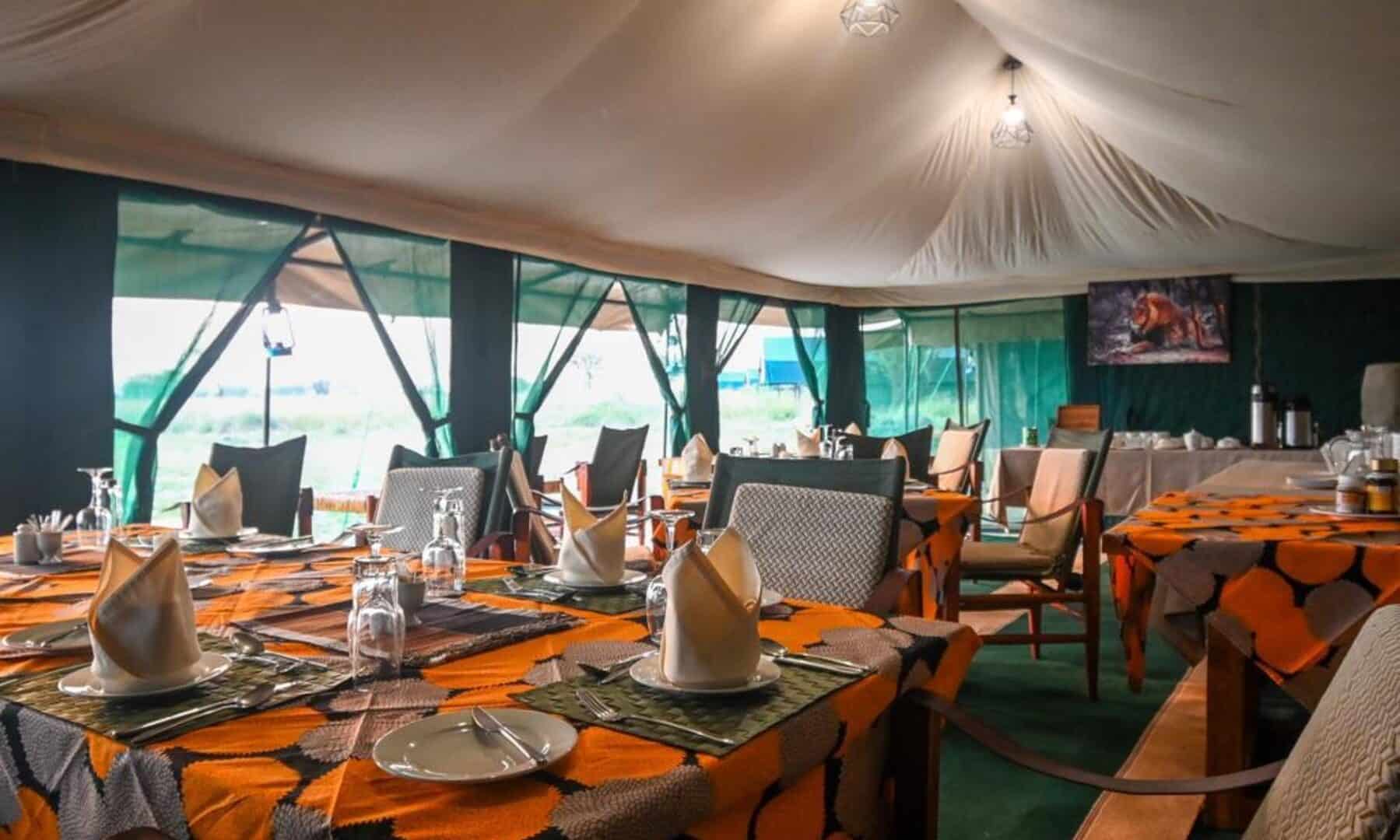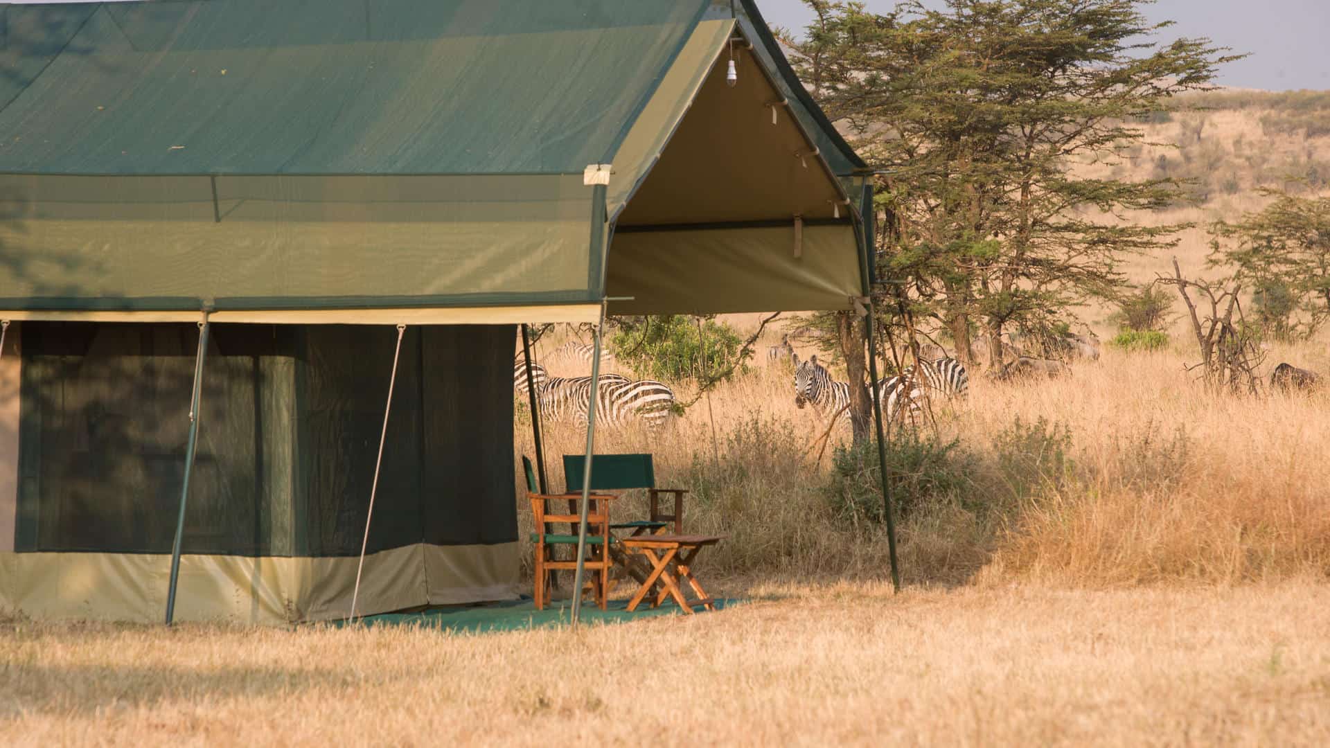 The camp consists of 11 mobile tents, designed to maintain an intimate and exclusive safari experience while remaining responsible tourism principles. Each tent features handmade furniture, including an armchair and footrest, a coffee station, and beds arranged according to guest needs. The beds are fully netted for mosquito and insect protection and furnished with white cotton sheets and double pillows.