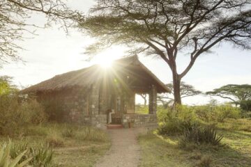 Ndutu Safari lodge is located in the Ngorongoro Conservation Area on the edge of the Southern Serengeti plains filled with acacia trees and wide views across Lake Ndutu.