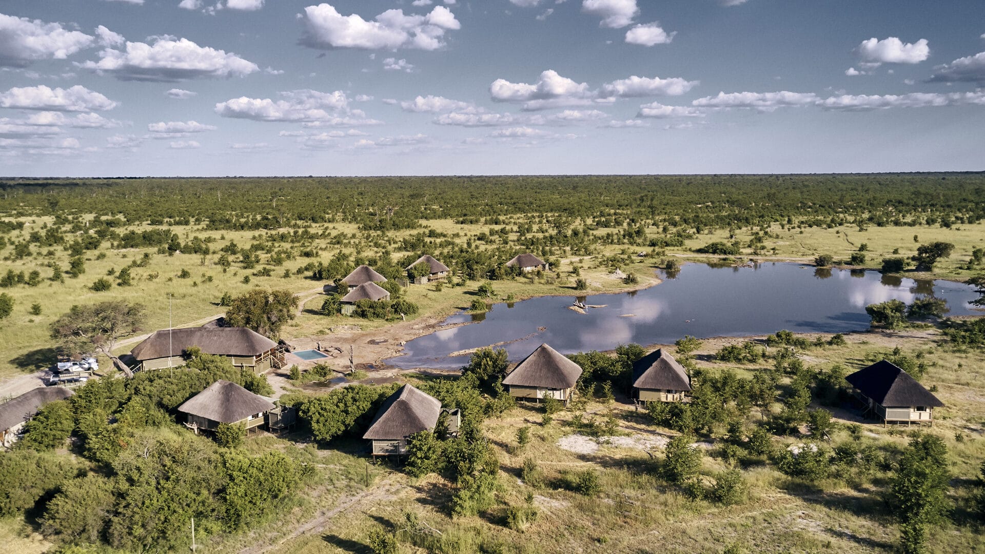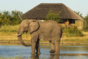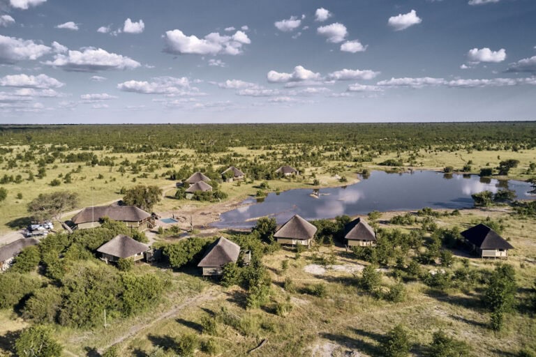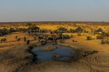 Situated on a private concession in northern Hwange National Park, Nehimba Lodge offers a sublime safari experience where comfort meets wilderness. Nine spacious canvas-under-thatch tents sit on elevated teak decks, providing serene views over the magnificent lodge waterhole—a gathering place for elephants, especially during the dry season.