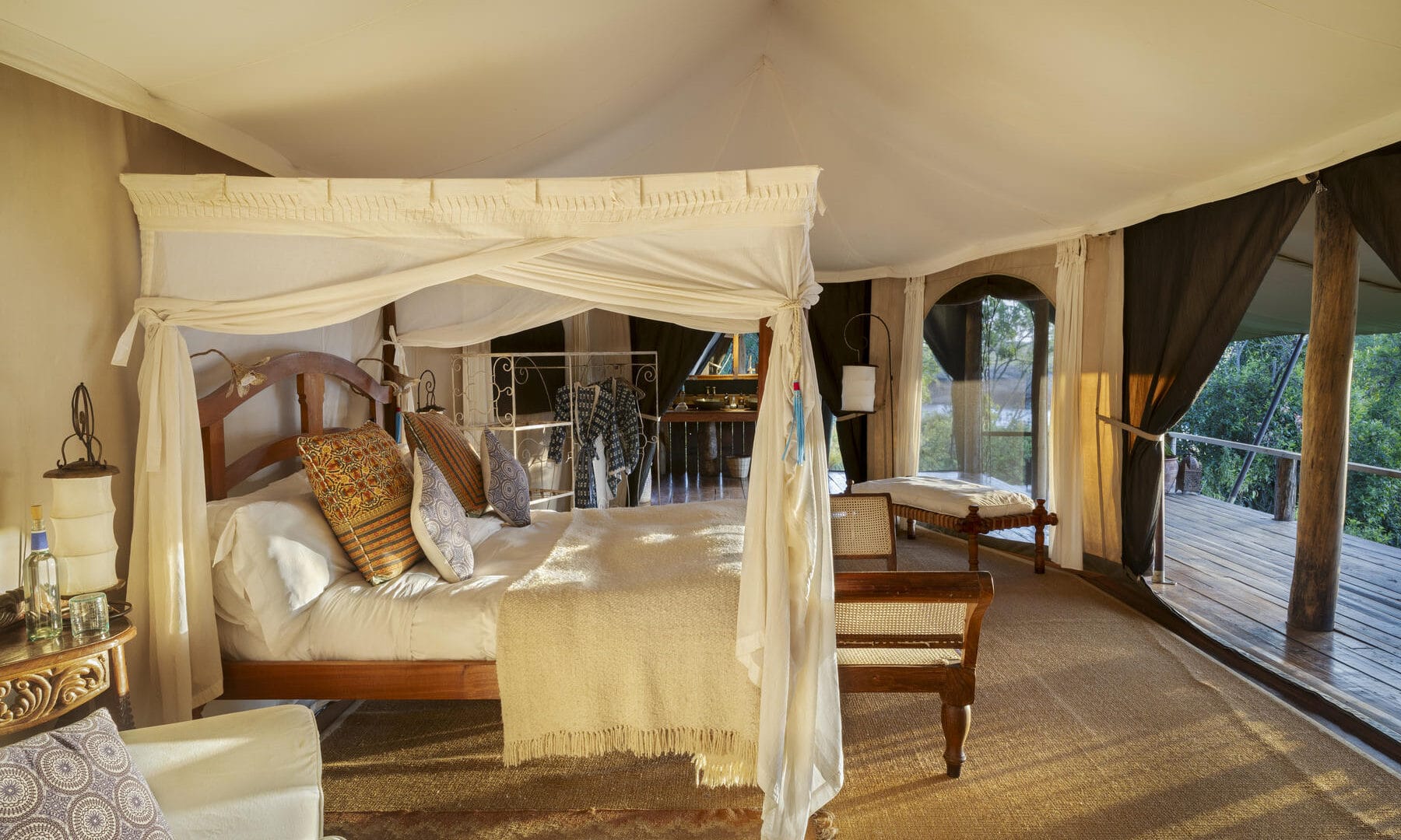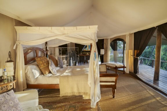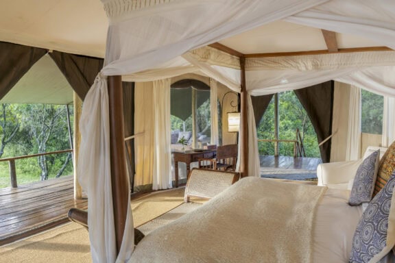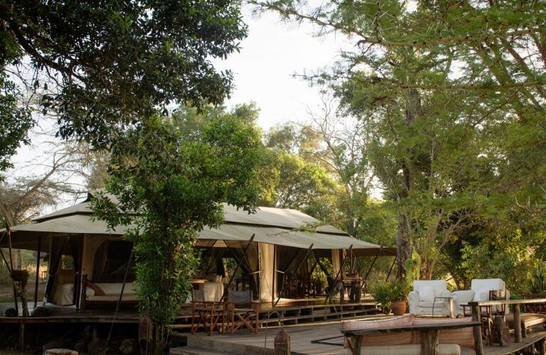 Hugging the banks of the Mara, Ngare Serian is cozy and intimate. It can only be reached on foot, over a narrow rope bridge – and in a way the crossover is symbolic: a call to step out of touch and out of time, and give yourself over to the natural charm of the place.