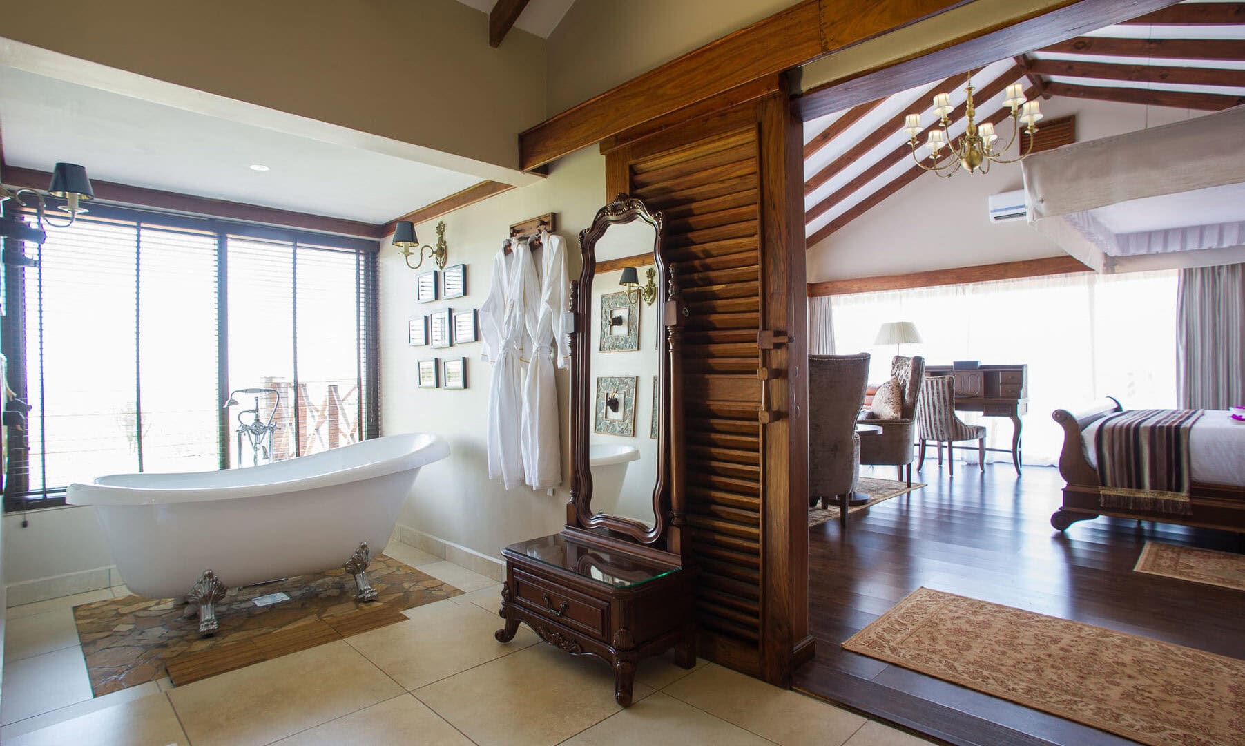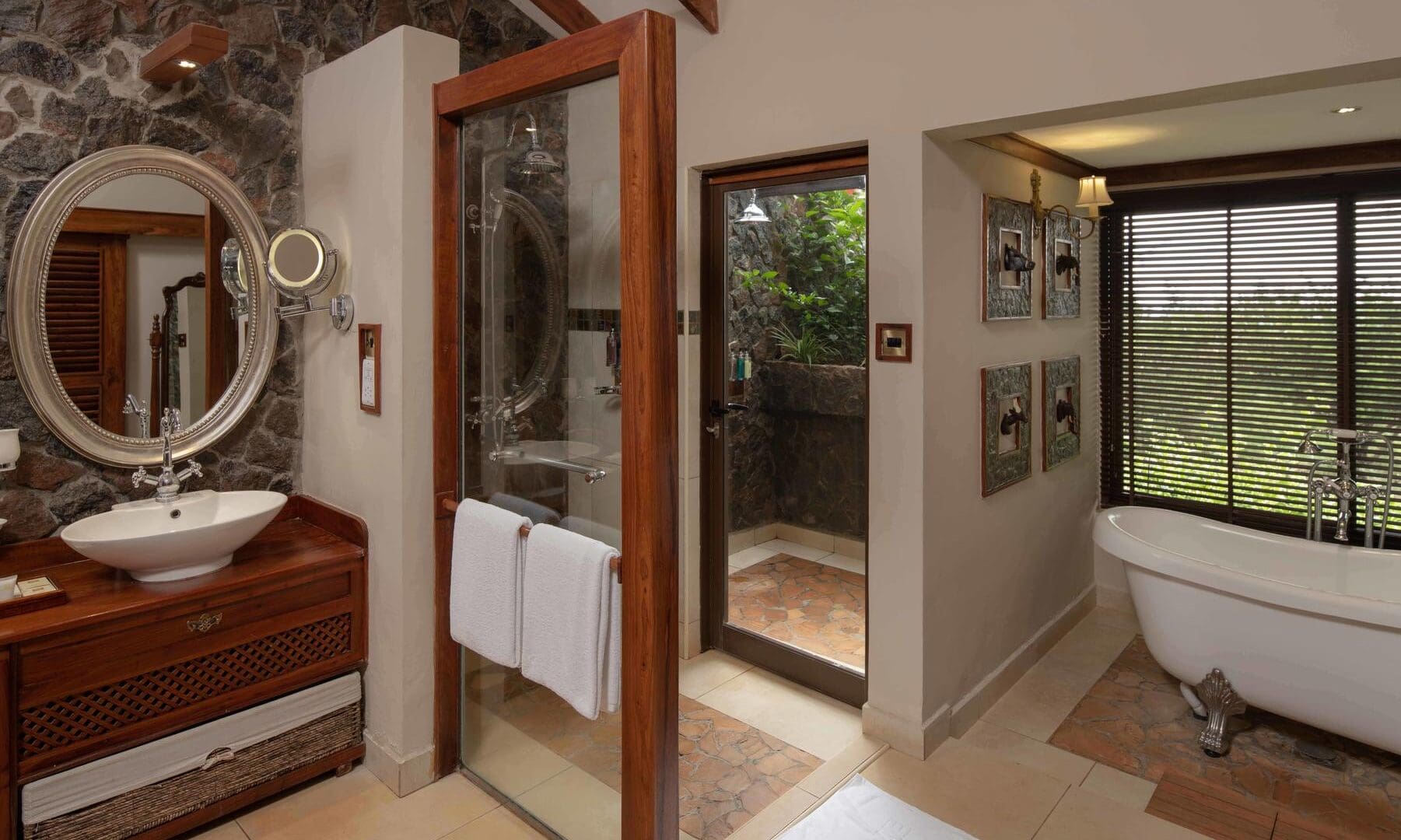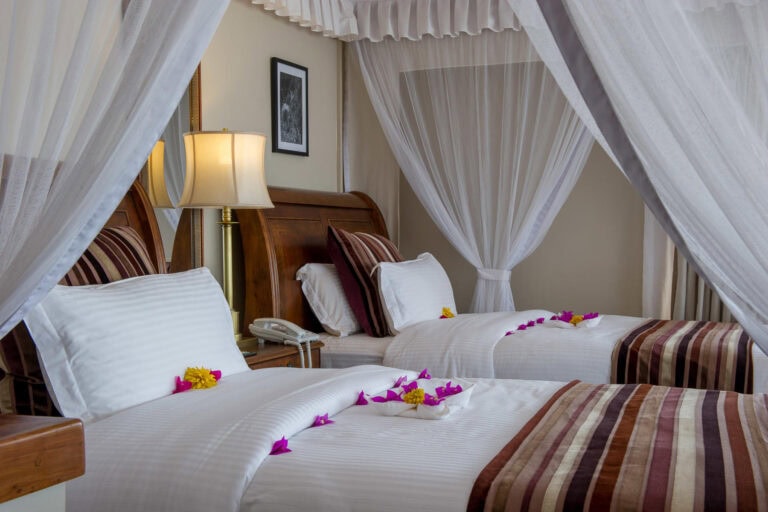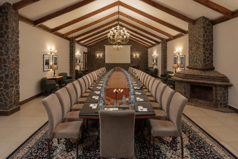 The lodge features 50 luxury rooms and a Livingstone Suite, each designed to merge comfort with the lodge’s scenic natural surroundings. The expansive property boasts a grand central hallway, infinity pool, and facilities such as a spa, boutique, and conference room, making it an ideal retreat not just for safari-goers but for anyone seeking a serene stay.