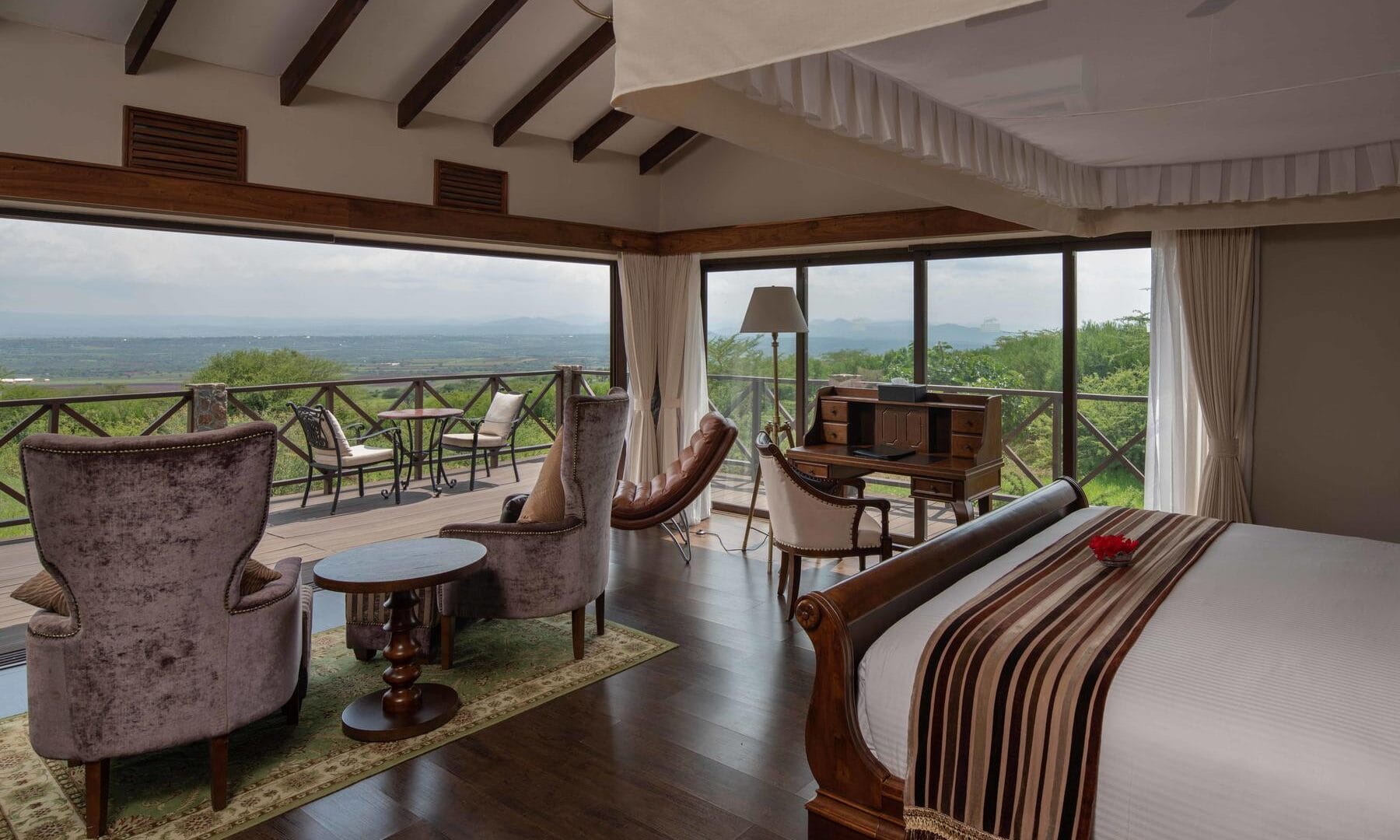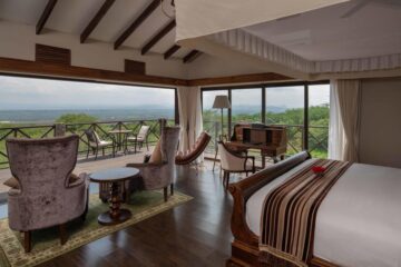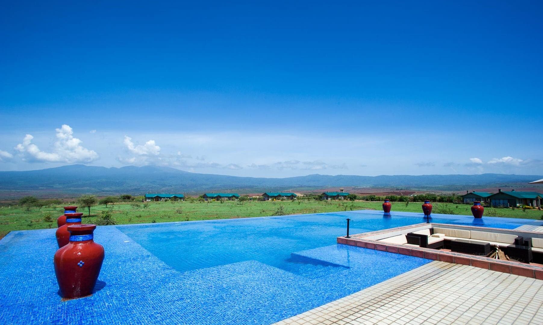 The lodge is poised atop a hill, and surrounded by 40 acres of verdant gardens, home to diverse birdlife. Enjoy the 360-degree views extending to Lake Eyasi and Lake Manyara, with an convenient location close to the Ngorongoro Gate and Lake Manyara Airport.