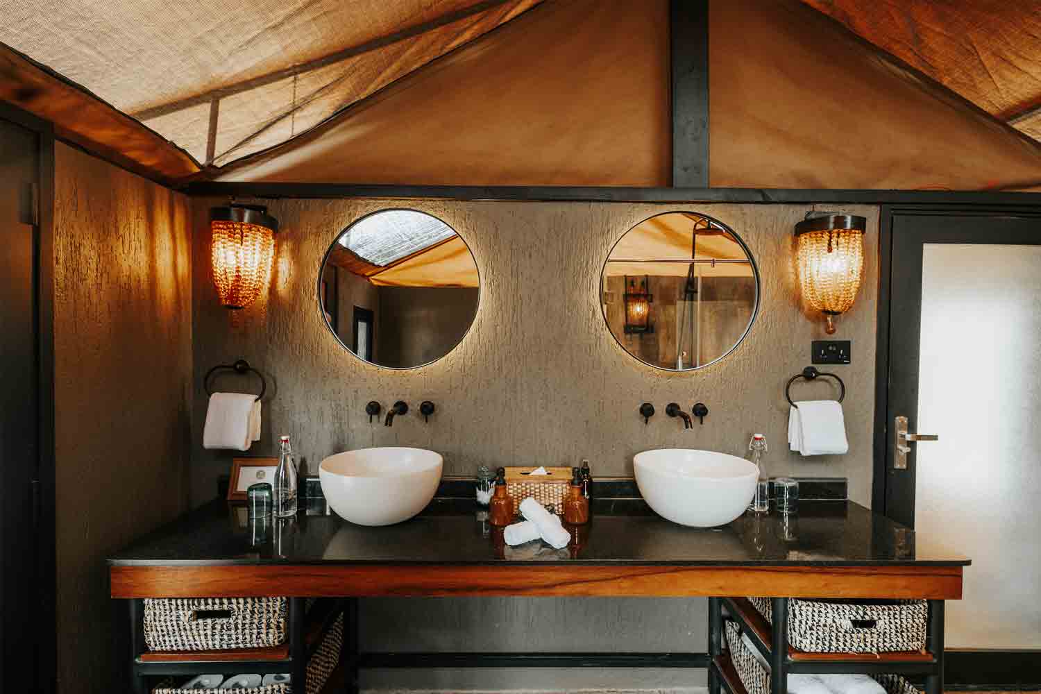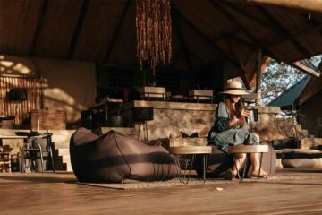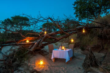 Eight tented suites overlook a riverbed, each with private decks and en-suite bathrooms. Two family suites feature connecting lounges and private plunge pools. The contemporary organic design incorporates local fabrics, recycled glass, and natural materials, creating a calm retreat where you can witness vast herds of elephants, 500+ bird species, and ancient baobab trees. The camp’s unique underground hide allows for intimate wildlife viewing as animals come to drink.