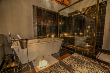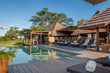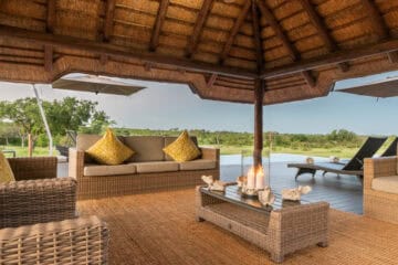 The property provides an intimate retreat with just eight stylish thatched chalets and a dedicated honeymoon suite. Each room features contemporary African decor, en-suite bathrooms and decks that overlook the open plains. You can spend your afternoons cooling off in the unique rock pool or the infinity-style swimming pool while watching game frequent the nearby waterhole.