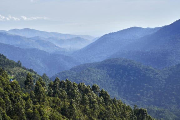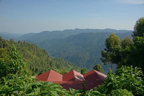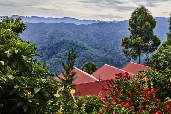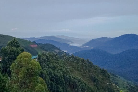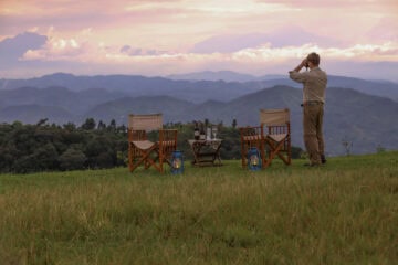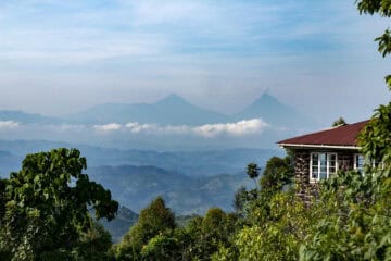 Nkuringo Bwindi Gorilla Lodge sits at a 7000-ft (2,161 meters) altitude on a magnificent ridge with stunning views across the rugged landscapes and beyond to the Virunga Volcanoes chain.