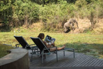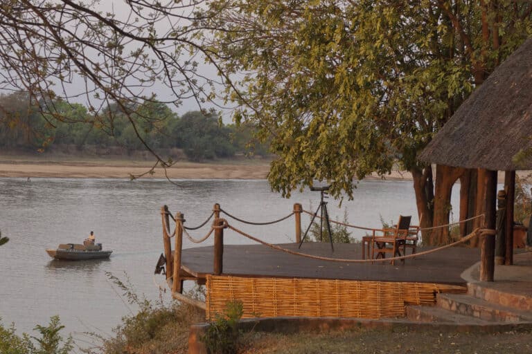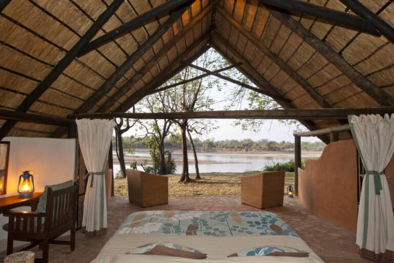 Nkwali is located on the banks of the Luangwa on a magnificent meander in the river overlooking the National Park where leopards roam along the bank and can often be spotted from camp.