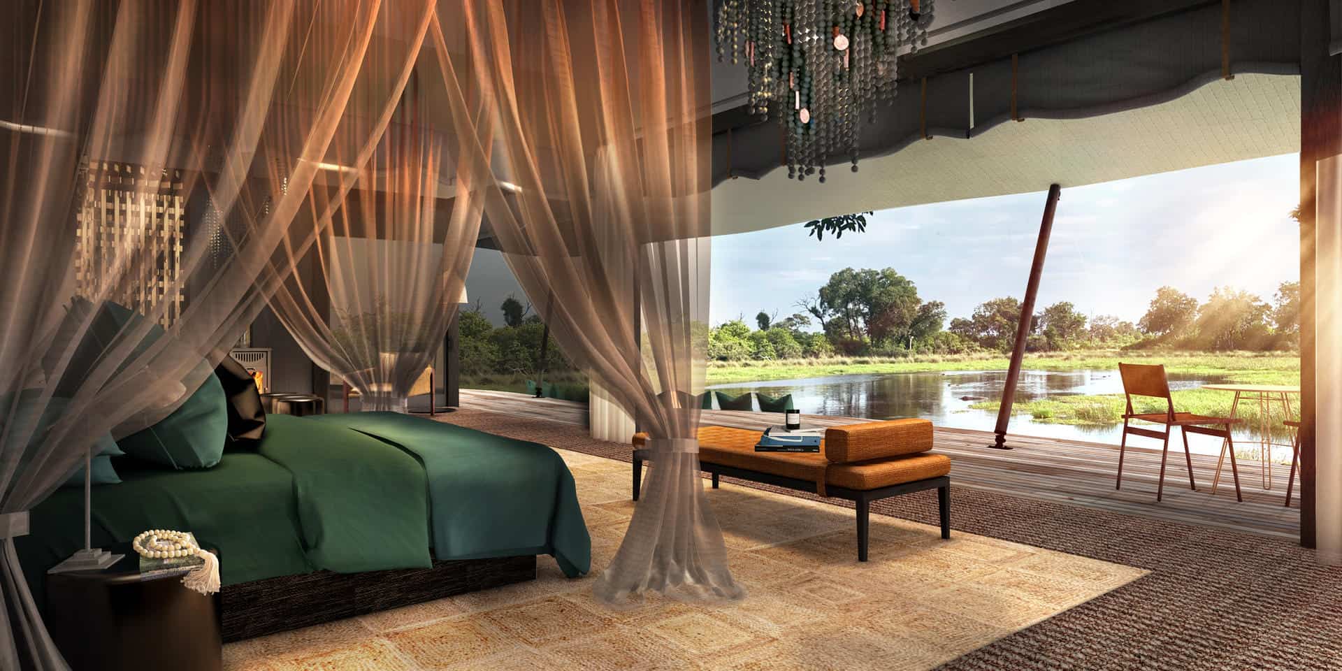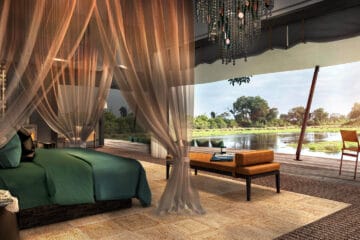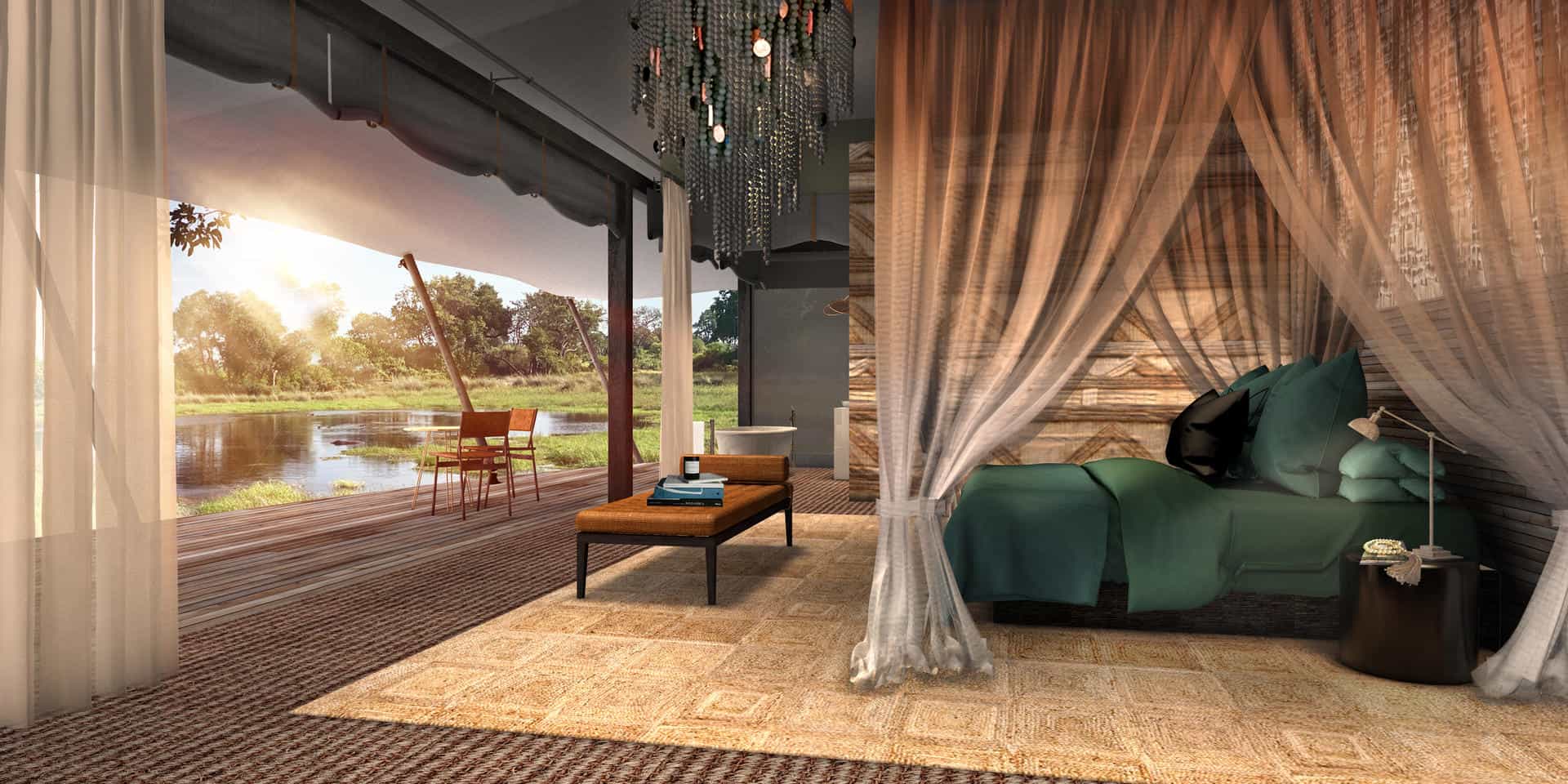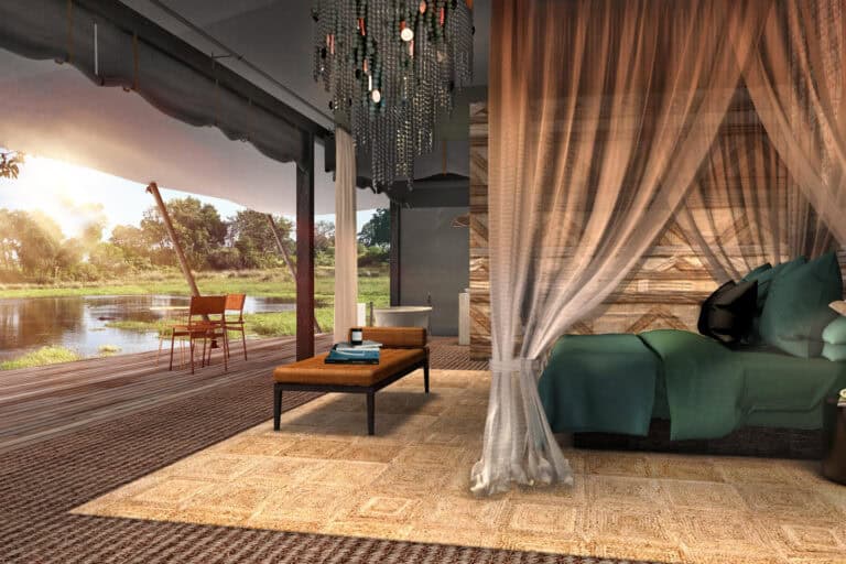 Each tent has been designed around a congregation of beautiful big trees, with exceptional lagoon views. Delights of ebony, mangosteen, rain trees, leadwood and wild fig. The adventure here comes to you in waves, as you safari amongst the islands, rich with wild things and extraordinary beauty. This is without doubt, an incredible Okavango Delta safari experience.