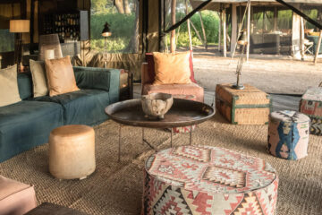 Nyasi Migrational Camp has eight en-suite tents and a family tent. A love of nature and raw organic materials inspires decor.