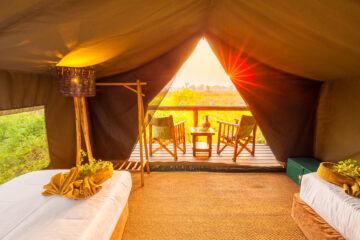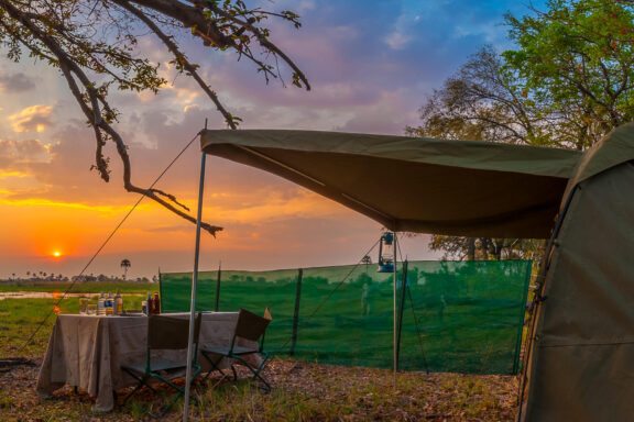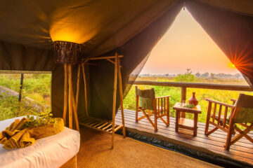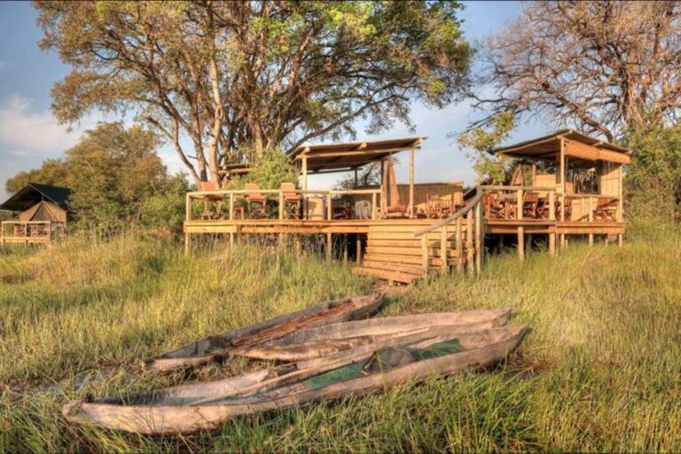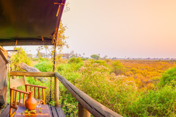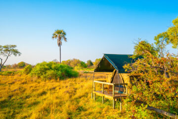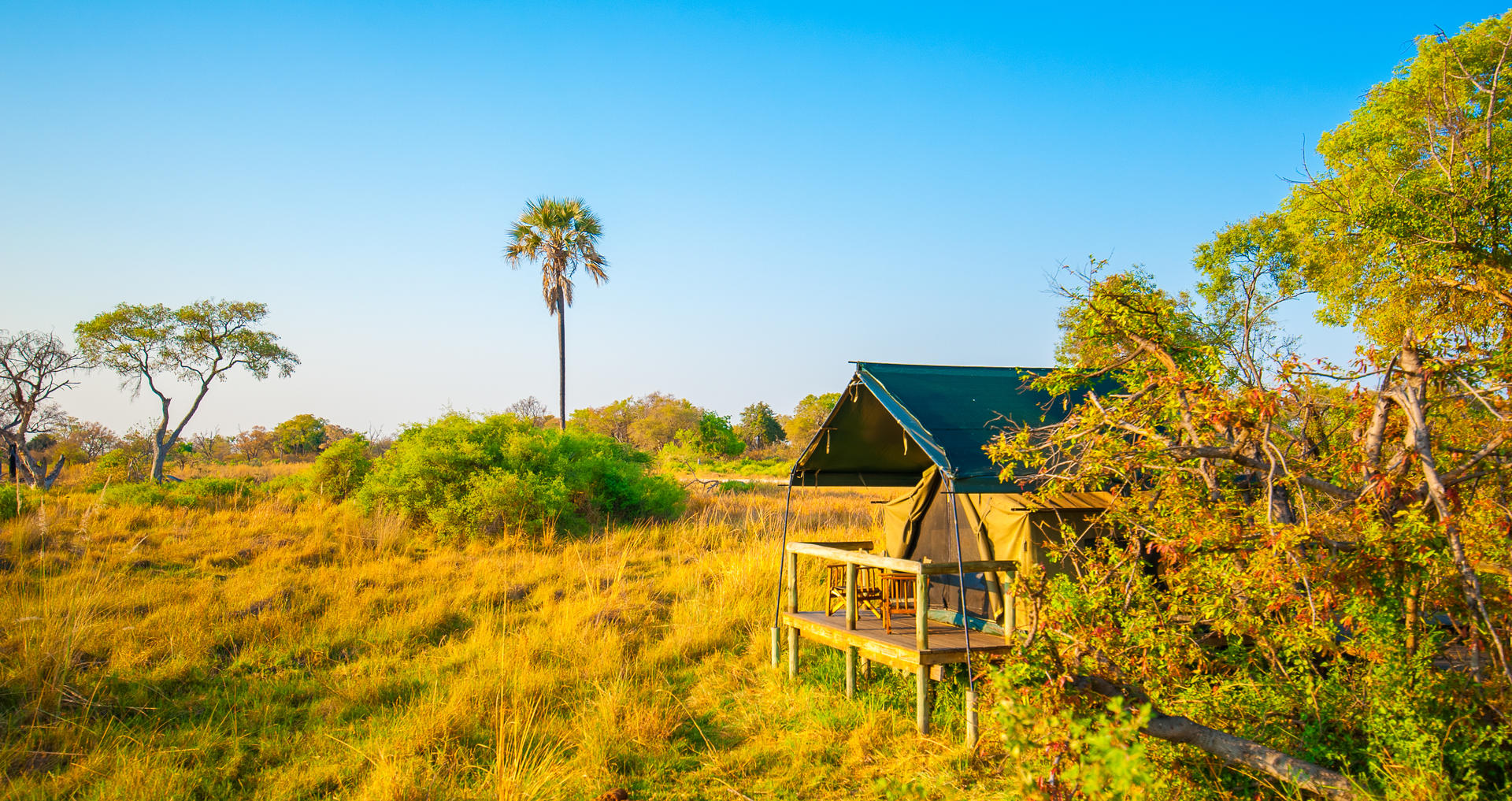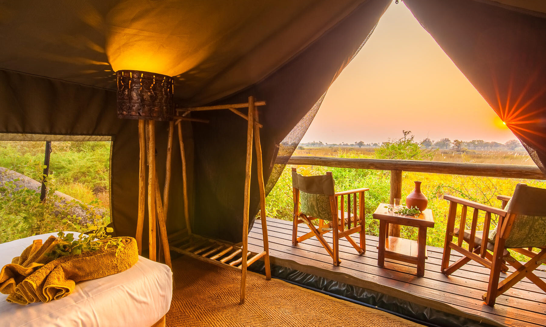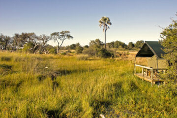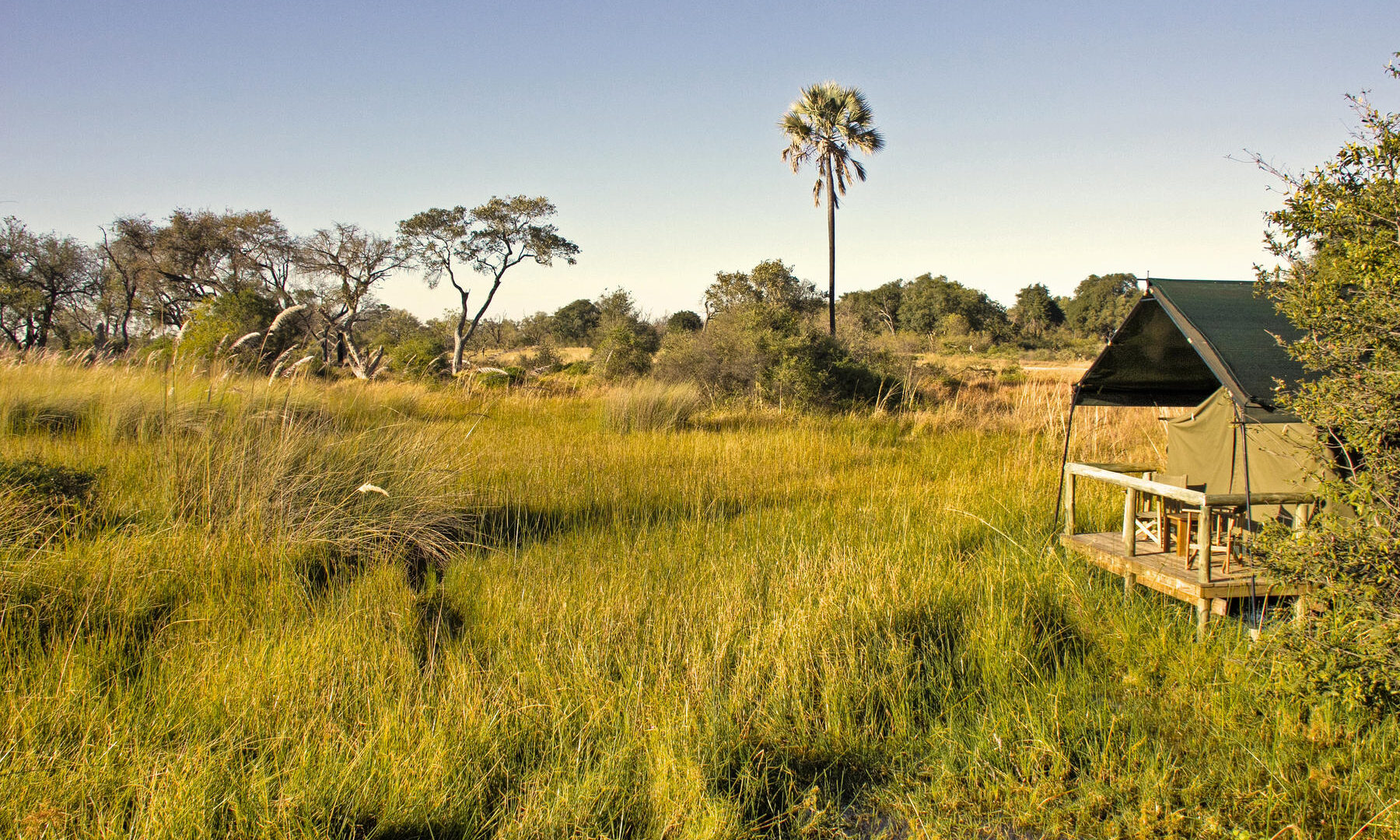 Oddballs’ Enclave is a small, secluded off-shoot of the Okavango’s most famous destination, set on the same beautiful island and with spectacular views over the floodplains and old-growth forest of the island fringe. With just five elevated ‘mini-meru’ walk-in tents, each en-suite, with single or king beds and fine linen, The Enclave is the perfect venue for small groups, families and those seeking an intimate atmosphere in which to luxuriate in one of the world’s most beautiful settings.