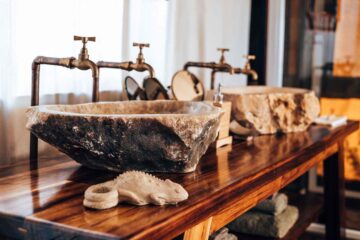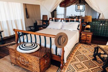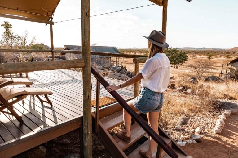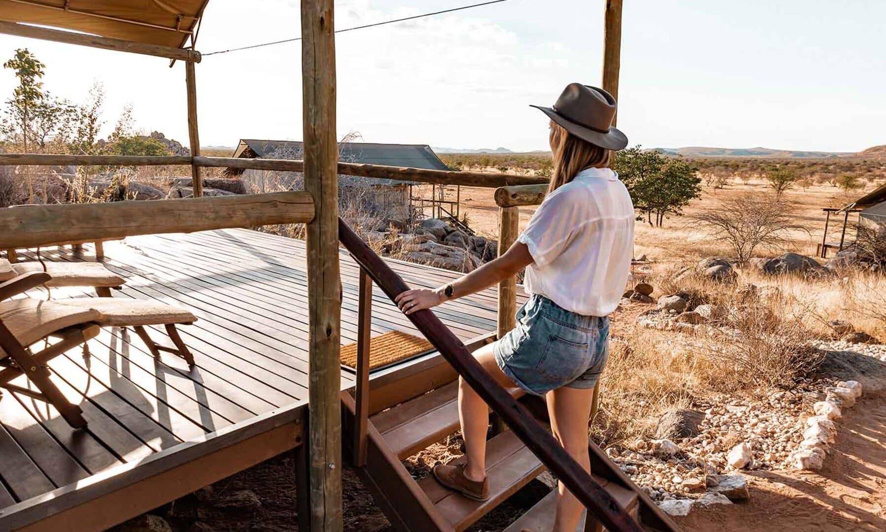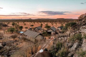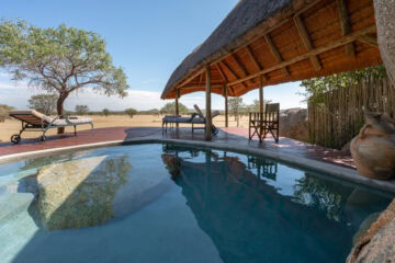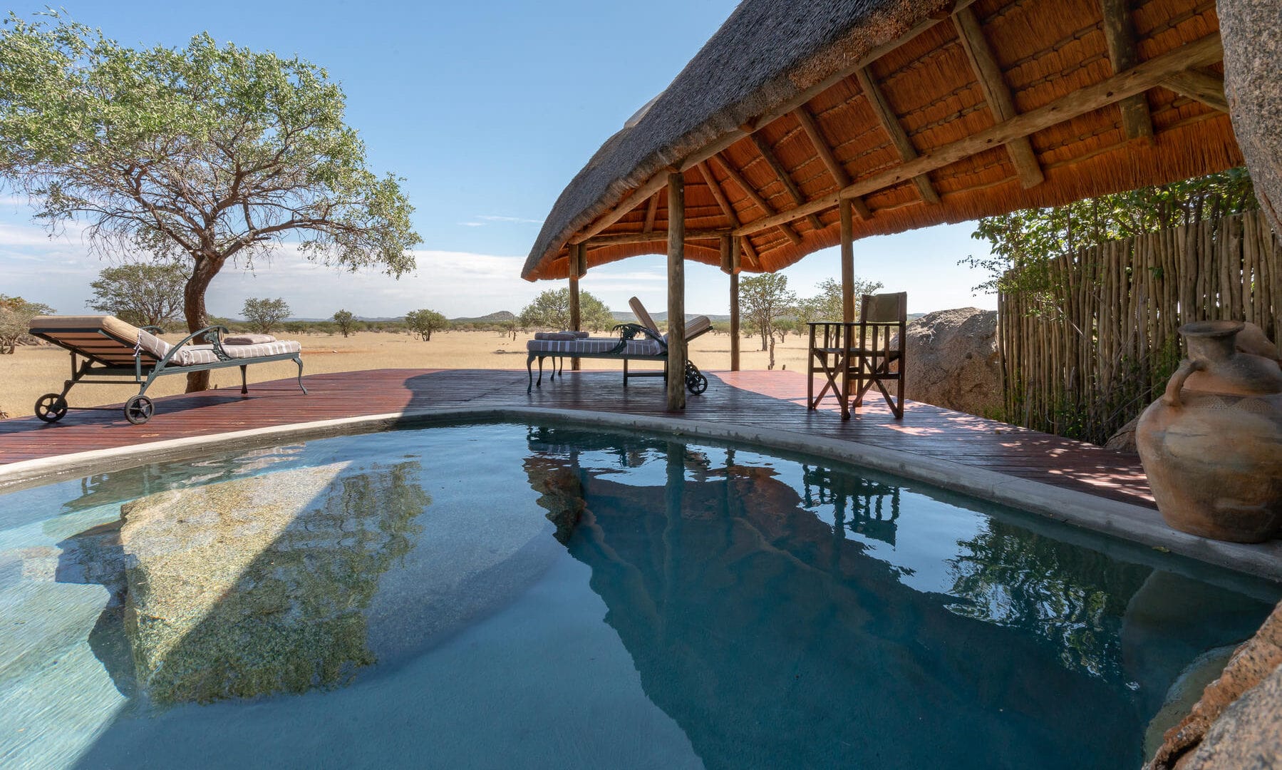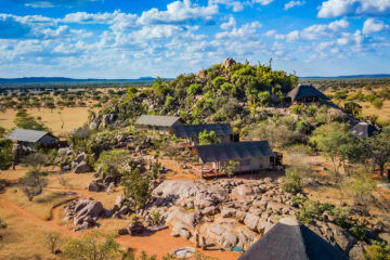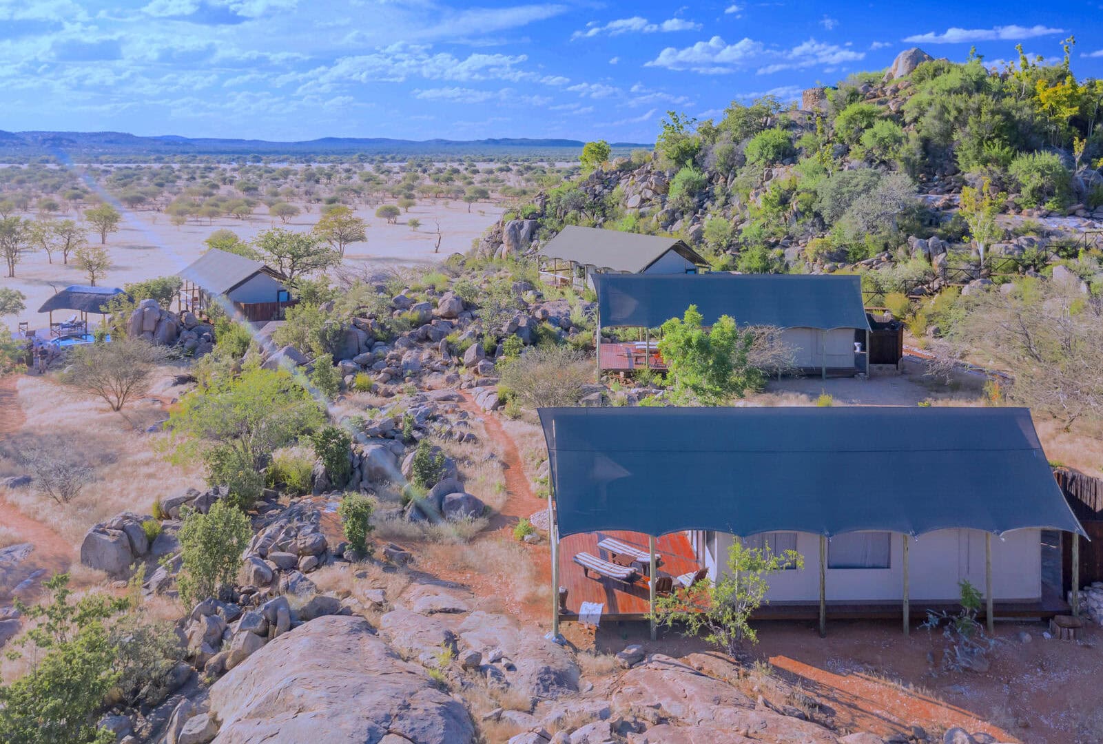 Designed and created to get guests as close to nature as they can get, the Ohorongo Tented Camp is intimate and tranquil. The wooden decks and thatched roofs reflect its authentic Namibian spirit, and the sustainable construction materials blend gracefully with the landscape’s granite monoliths. There is a swimming pool.