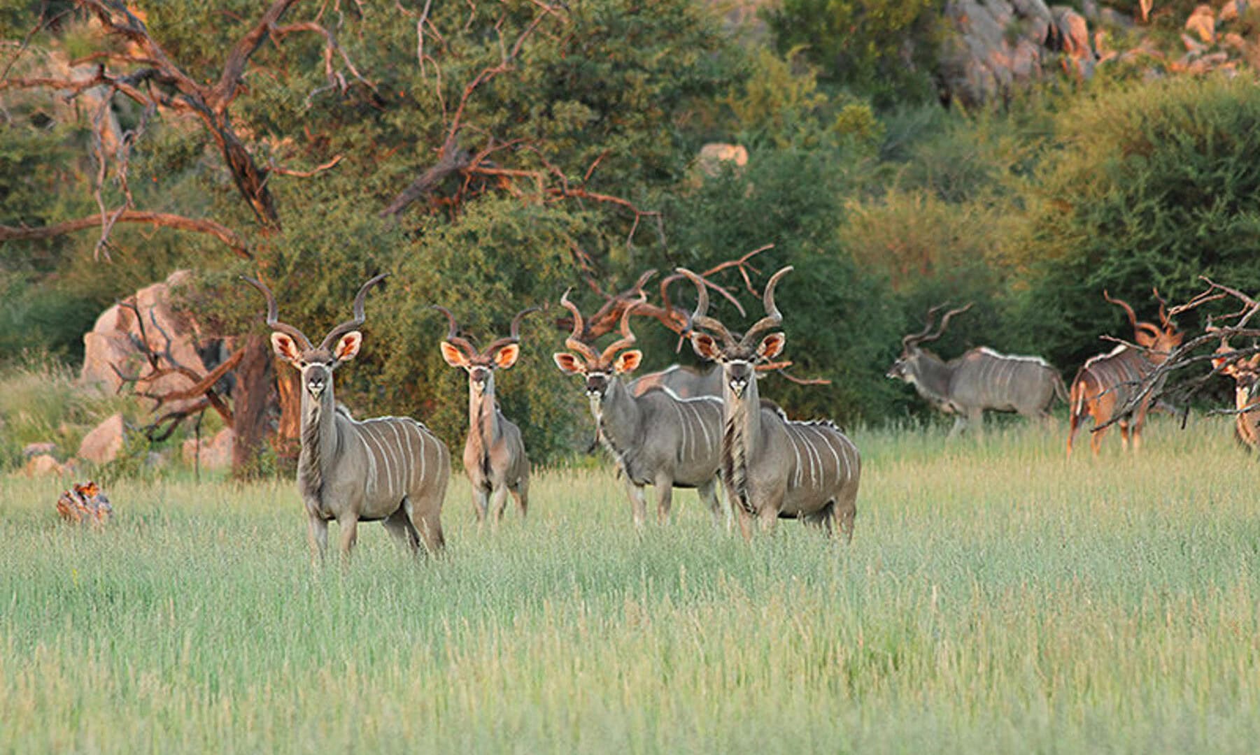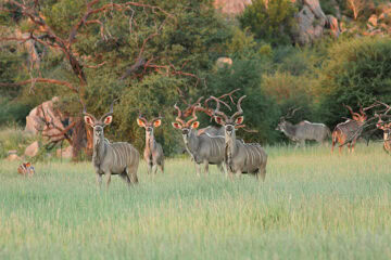 The Ohorongo Game Reserve is nestled in a remote corner of the Namibian highlands, 300 km north of Windhoek. The highlight of your stay will be the remoteness and diversity of scenery. Vast, thorny savannah, a breathtaking gorge with ancient Bushman caves and carvings, and a refreshing natural spring. You will be left speechless by the contrasts of the Namibian Bushveld landscape and the sheer diversity of fauna and flora to be found on this 100 000-acre reserve.