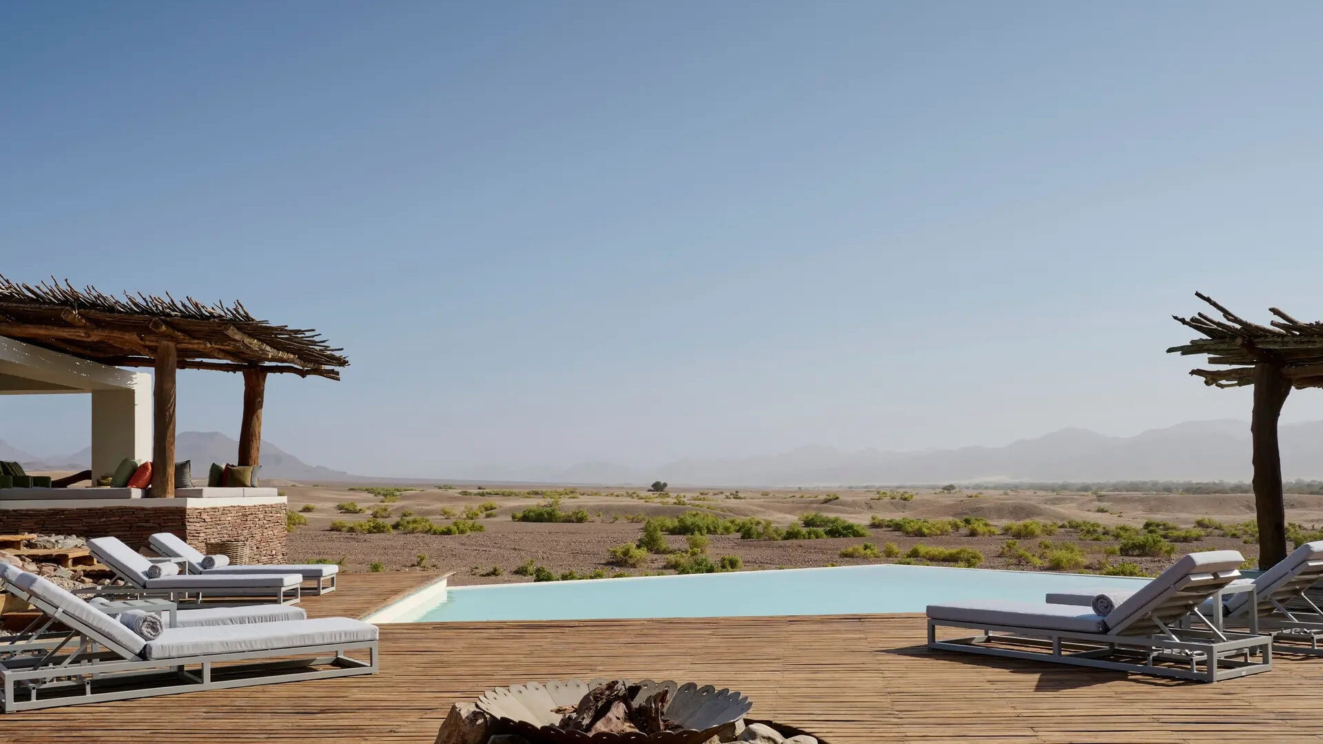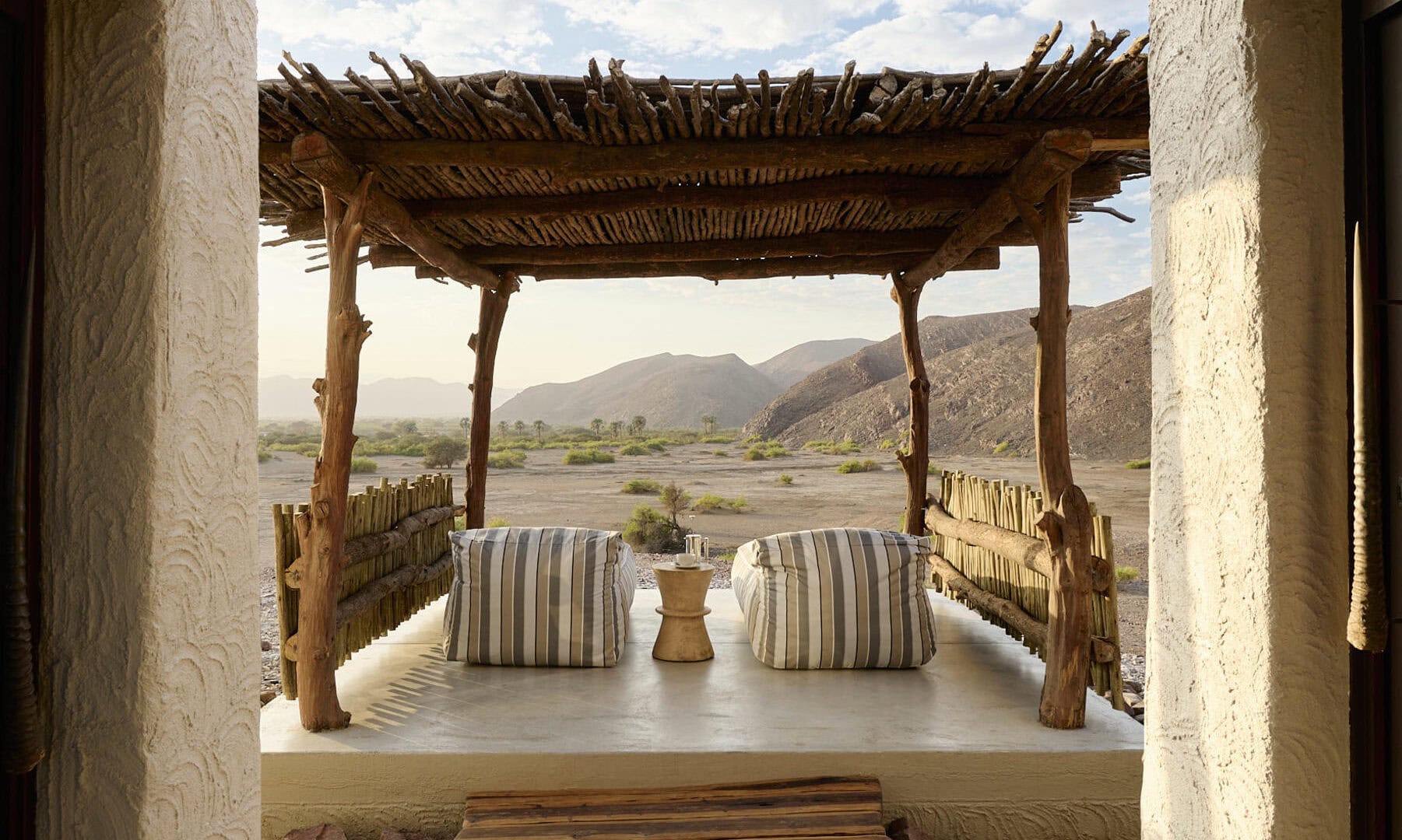 Situated in Namibia’s remote Puros Conservancy, Okahoringo Elephant Lodge is an otherworldly retreat on the banks of the Hoarusib River in Kaokoland. This intimate lodge features seven luxurious suites and one two-bedroom Private Villa, all designed with inspiration from local Himba architecture.