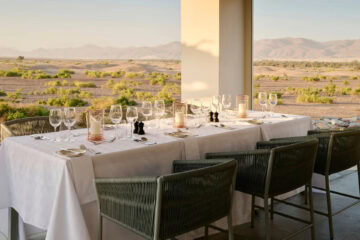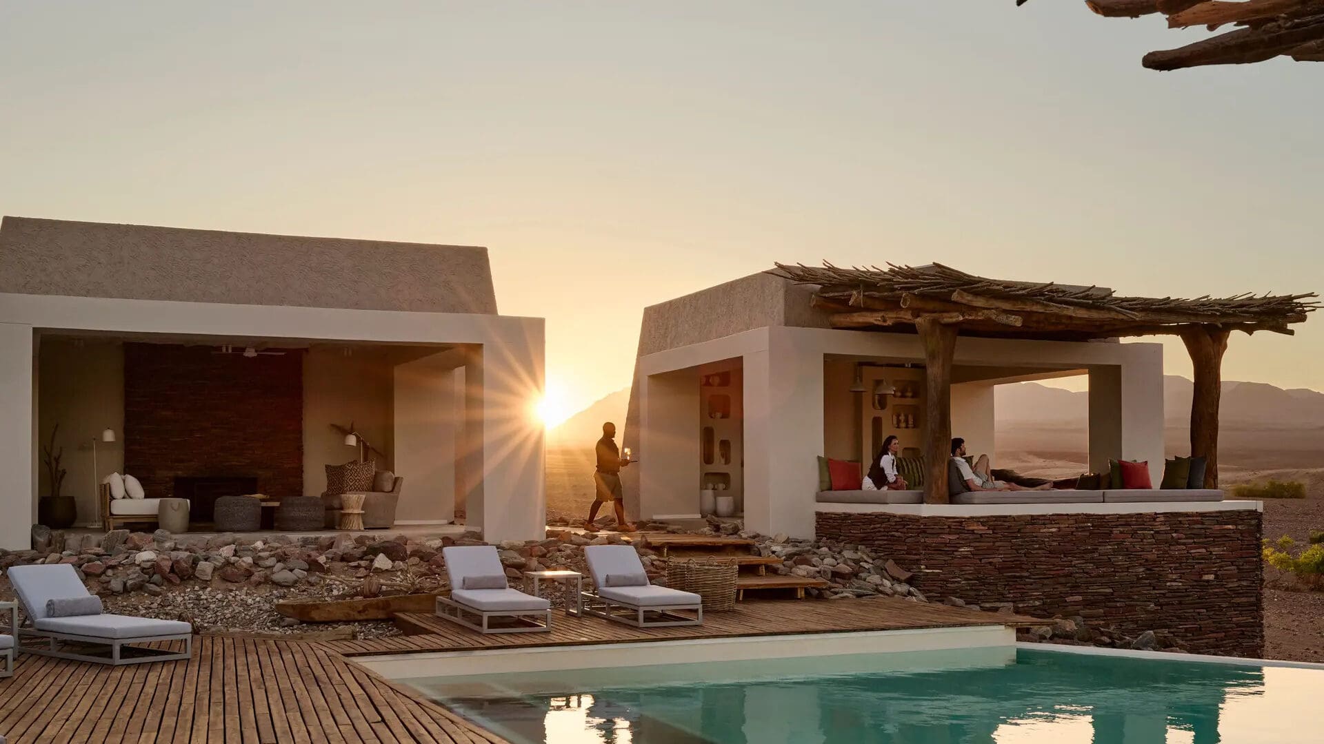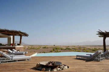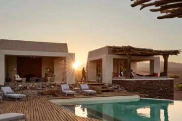 The lodge perfectly balances timeless African design with contemporary comfort, offering pale, luminous interiors that complement the severe splendour of the Namibian desert. The rest, including the convivial dining room, are open-sided and arranged to frame various aspects of the breathtaking scenery beyond.