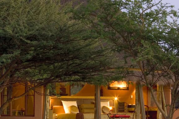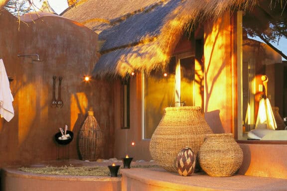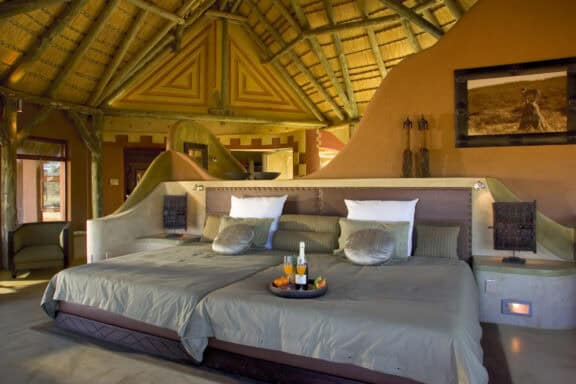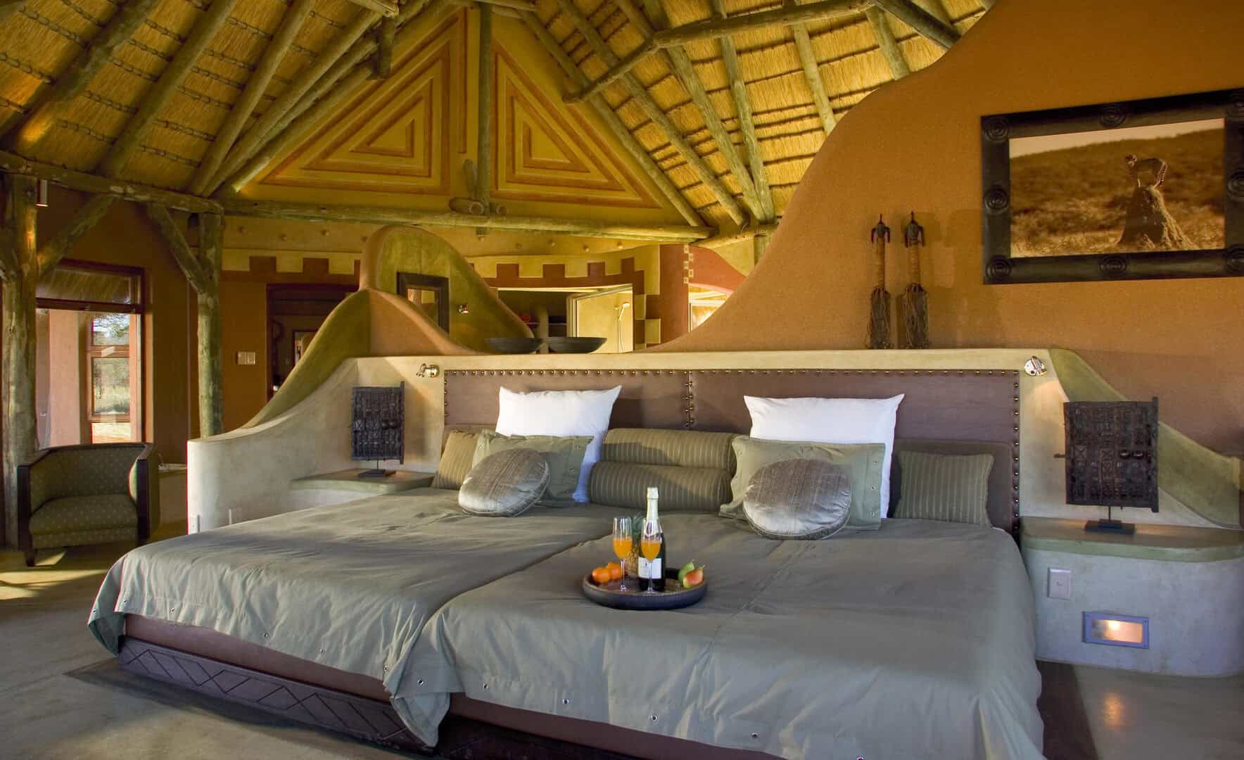 The Private Bush Suite is situated in the open Acacia thornveld within the secluded wilderness area of the Okonjima valley with a backdrop of the sandstone Omboroko Mountains. Located on the edge of a natural waterhole, the Bush Suite can accommodate a family or a group of four. The Bush Suite consist of two separate, luxury, en-suite bedrooms under a double-volume thatched roof, a modern, chef-designed kitchen, a wood-burning fireplace that brings together the spacious lounge and dining areas, as well as outdoor dining options and a 13-metre private swimming pool. Our discreet hosts and chefs attend to all your needs from turn-downs to gourmet meals to ensure a relaxed luxury safari experience at Okonjima’s Bush Suite that’s hard to rival.