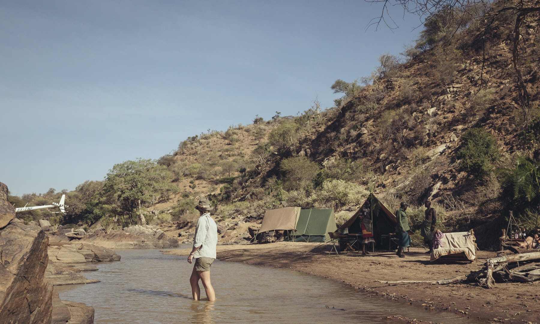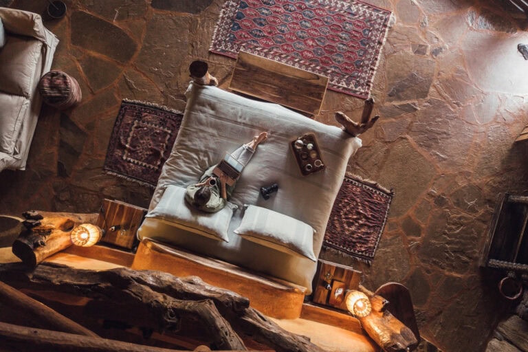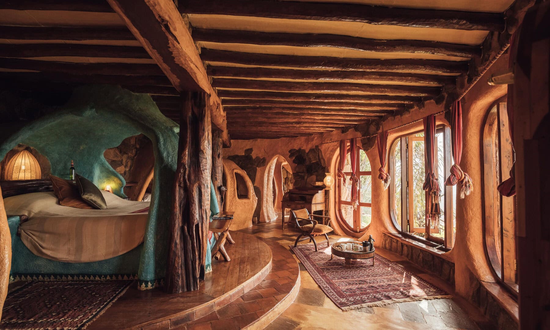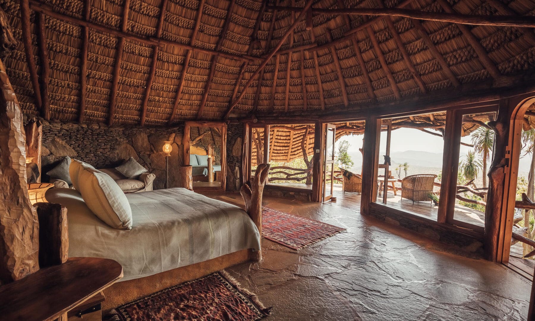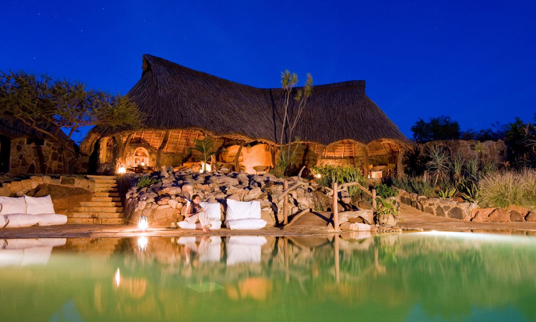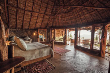 Separate cottages create a further three double bedrooms: each private and comfortable cottage has arch windows and doors, en-suite bathrooms, and decor inspired by the area’s wild landscape, local flora, and the life and culture of the Samburu people.