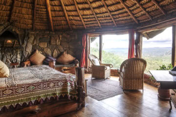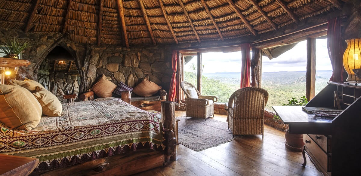 In this setting on a rock escarpment on the edge of the Laikipia Plateau, bordering the tribal heartlands of the nomadic Samburu people.