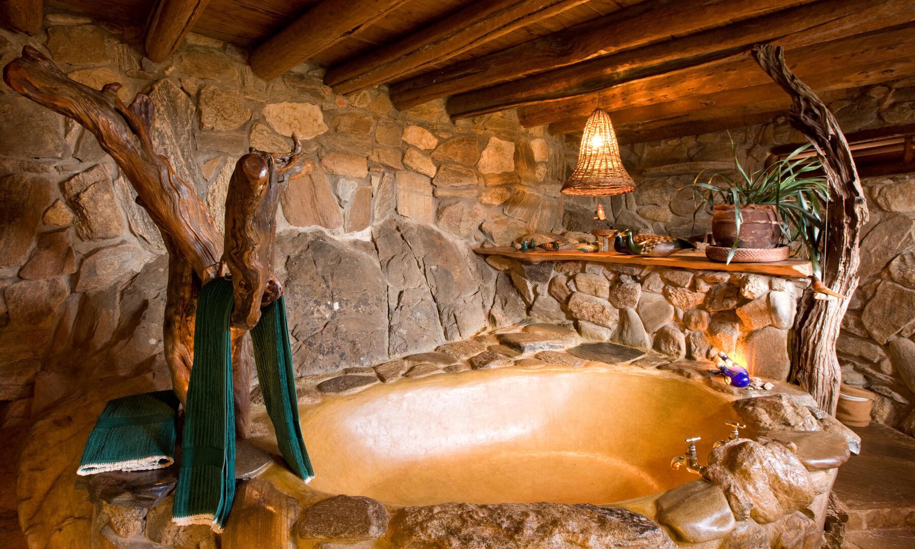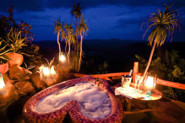 Ideal for your honeymoon and a couple’s getaway, a maze of slated pathways winds down to four rock and olive wood cottages.