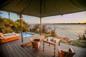 The main lodge area offers breathtaking 360-degree views, with the north facing onto the Zambezi and the south onto a waterhole, showcasing the lodge’s pristine natural surroundings. Old Drift Lodge is the perfect retreat for those seeking a luxurious safari experience while immersing themselves in the beauty of nature.