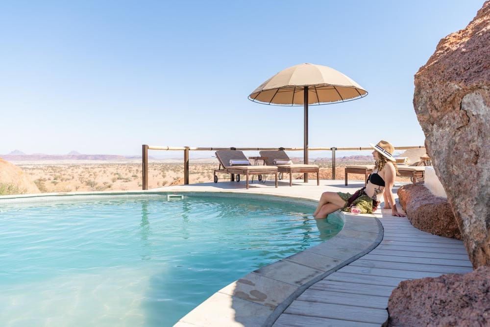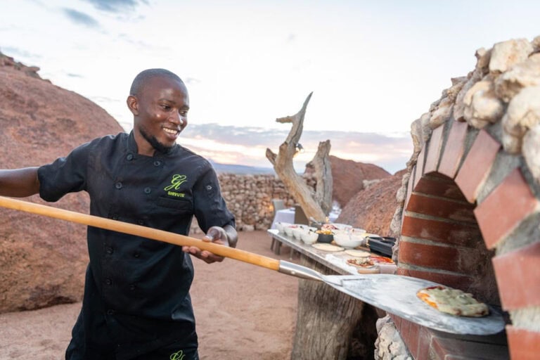Onduli Ridge, named after the local giraffes, is situated at the base of two south-facing granite outcrops in central Damaraland, offering stunning views of Namibia’s highest mountain, the Brandberg, and majestic granite inselbergs.