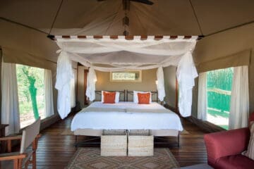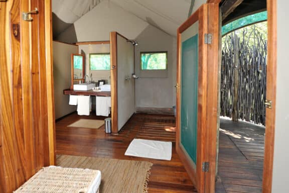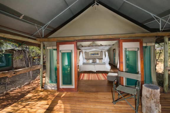 Eight large comfortable Meru-style tents all have en-suite facilities, open air showers and private verandas; the family unit sleeps four.