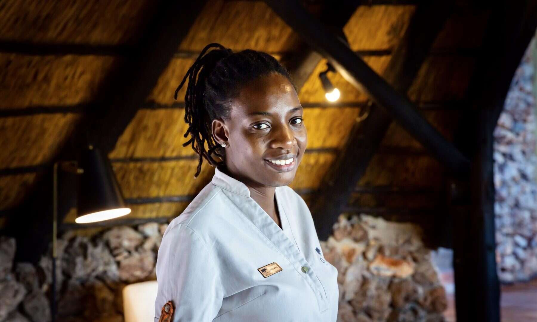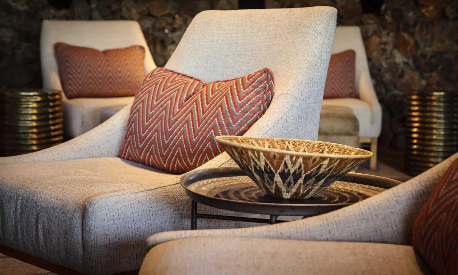 The classic safari style camp is tucked in a hidden valley at the foot of a dolomite hill in Ongava Game Reserve bordering Etosha National Park.