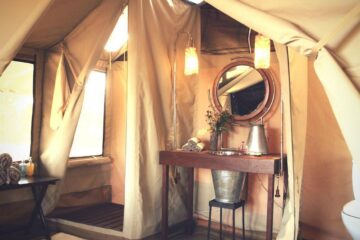 Eleven tents with en suite bathrooms decorated with fresh flowers and crystal, porcelain and wooden platters that make every meal special, and accommodations that elegantly combine modern and classic designs are available.