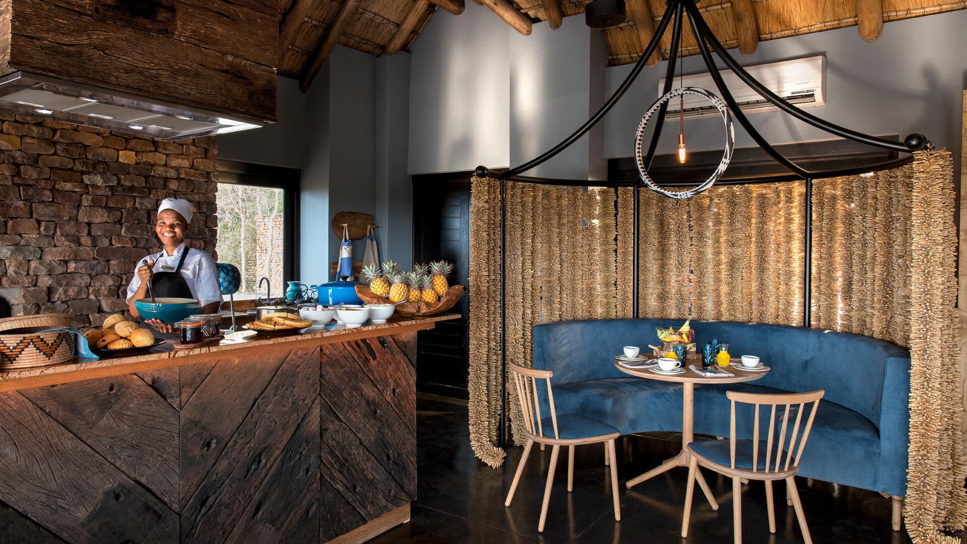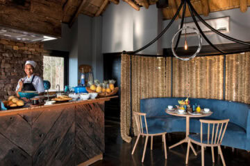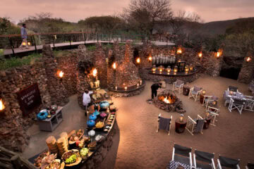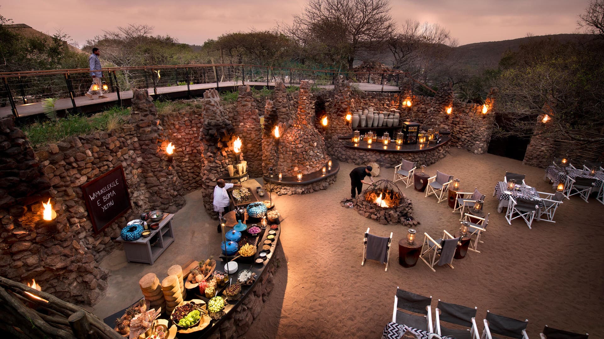 Delicious meals are served in the dining area that features an interactive kitchen and pizza oven, and under a star-studded sky in the traditional stone and reed Boma, theatrically illuminated by dozens of candles and lanterns.