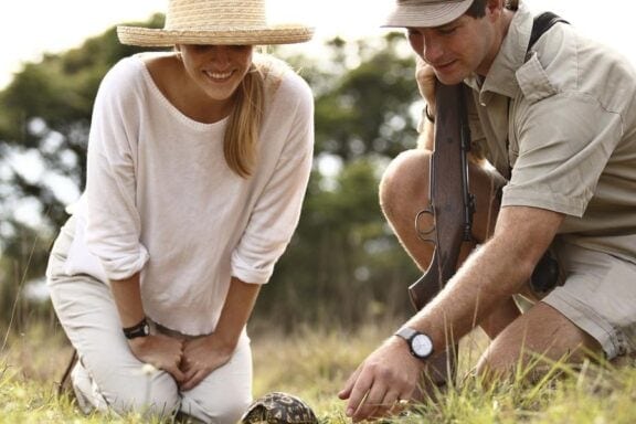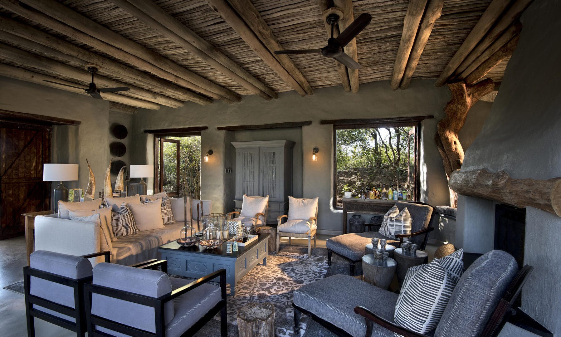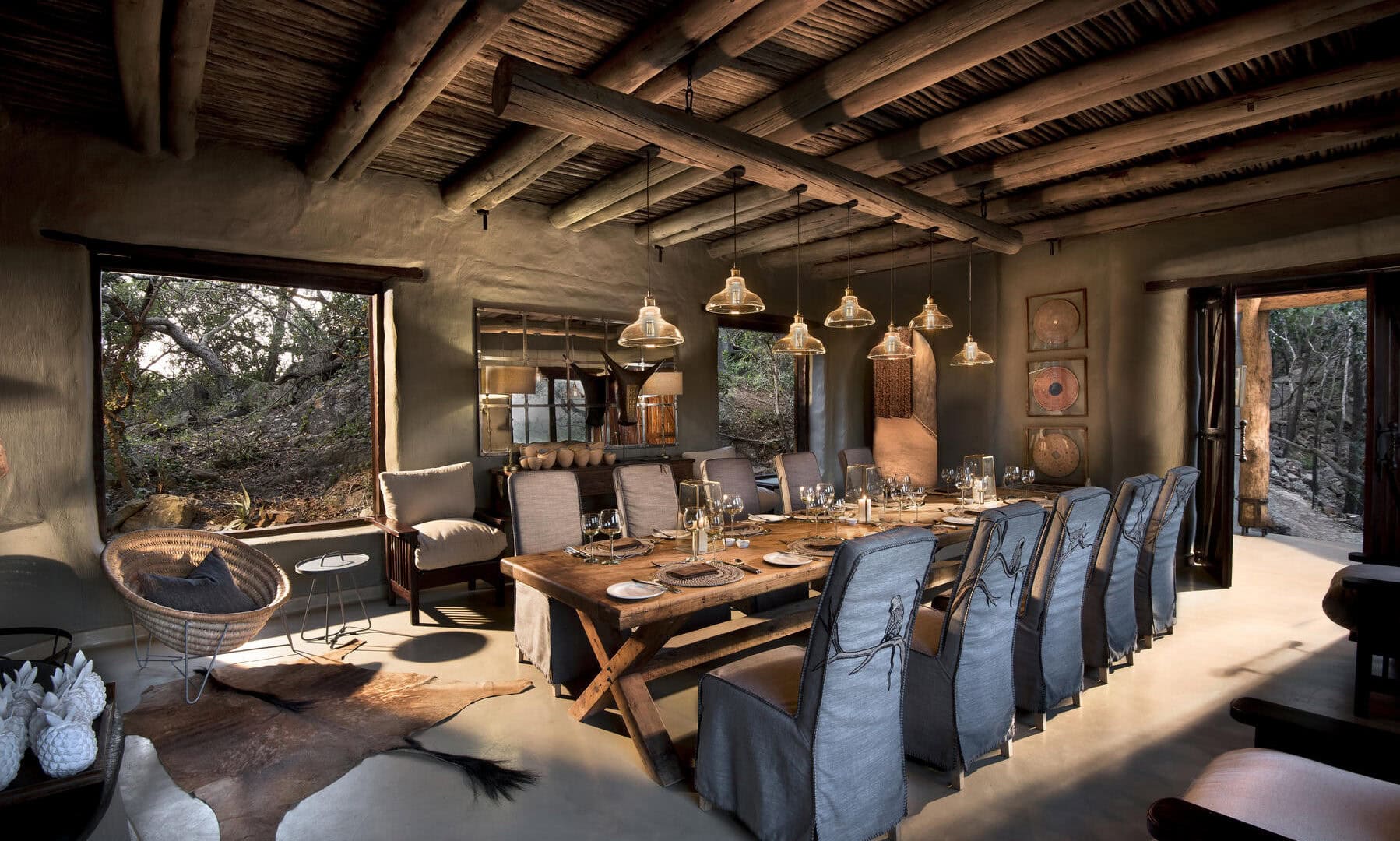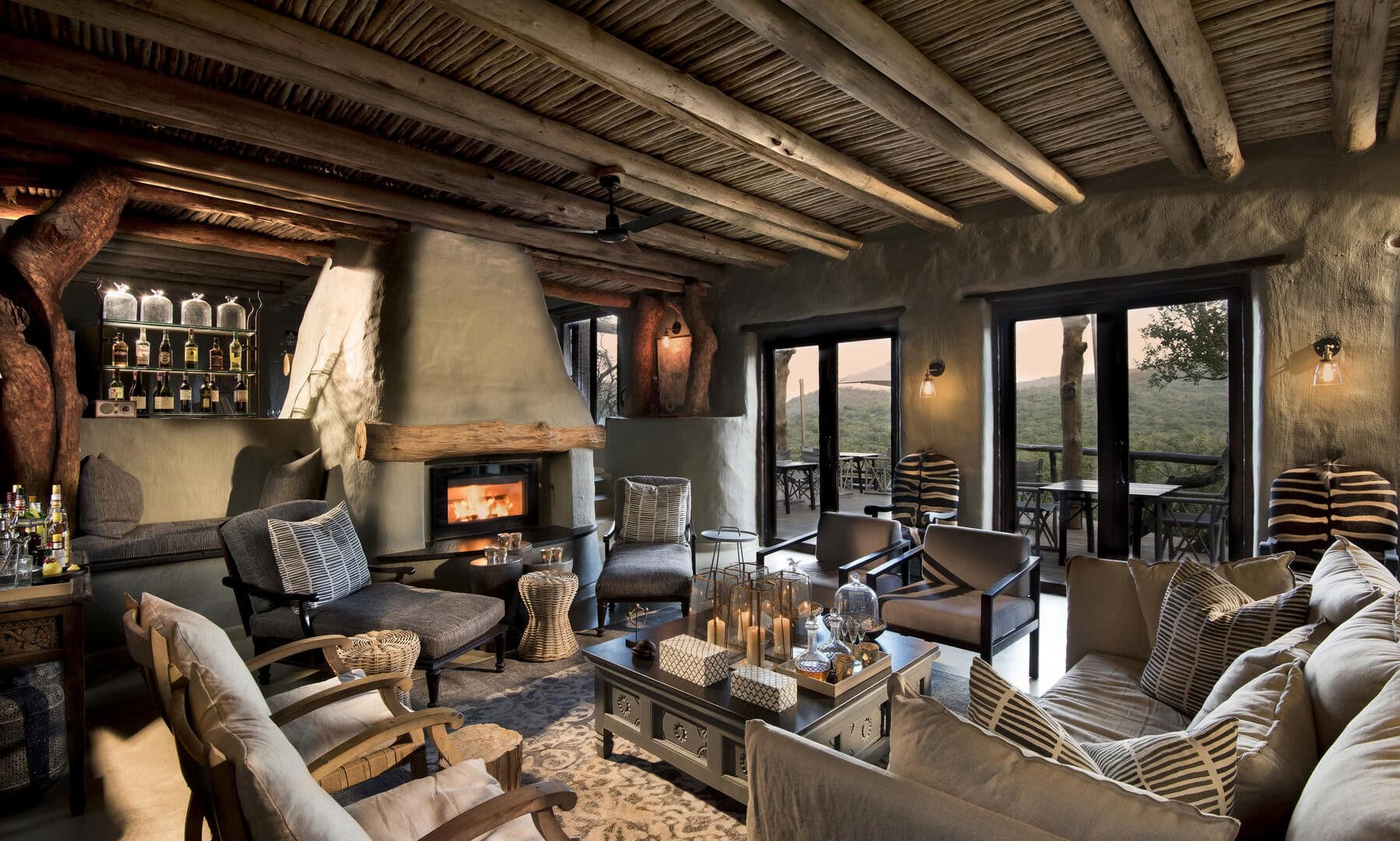 The lodge’s comfortable sitting areas offer the perfect vantage point for viewing the abundant birdlife in the surrounding trees and the wildlife roaming the bush below.