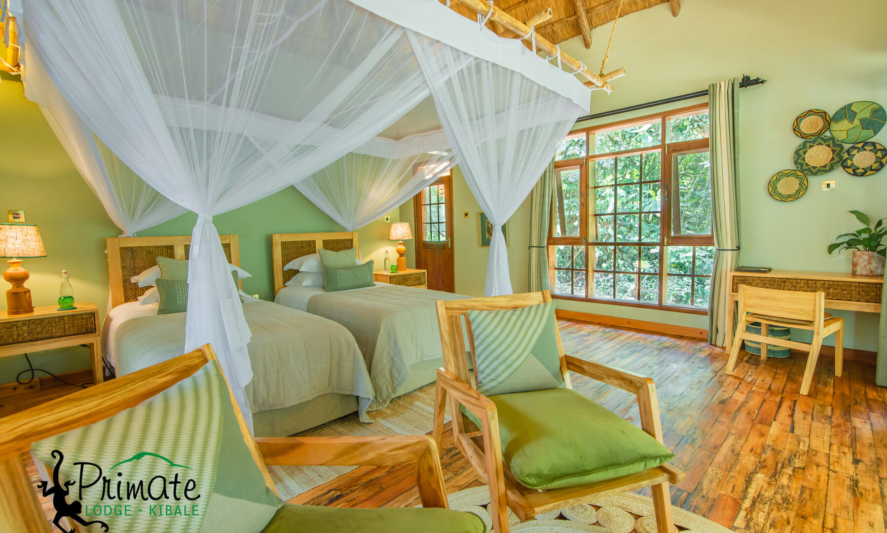 Primate Lodge in Kibale is an exclusive eco-lodge situated in the heart of Kibale Forest National Park. It is surrounded by a lush tropical forest that is home to 13 different species of primates, including the chimpanzees. Privately secluded in the rainforest, this safari lodge offers you a truly authentic jungle experience and is the perfect gateway for tracking the primates in Uganda. Whether you wish a high level of luxury and comfort, rather stay in a midrange cottage or want to bring your own tent, Primate Lodge Kibale is the ideal place for you. Primate Lodge Kibale was awarded with the Chimp Award 2008 for Investment in Eco-Tourism by Uganda Wildlife Authority.