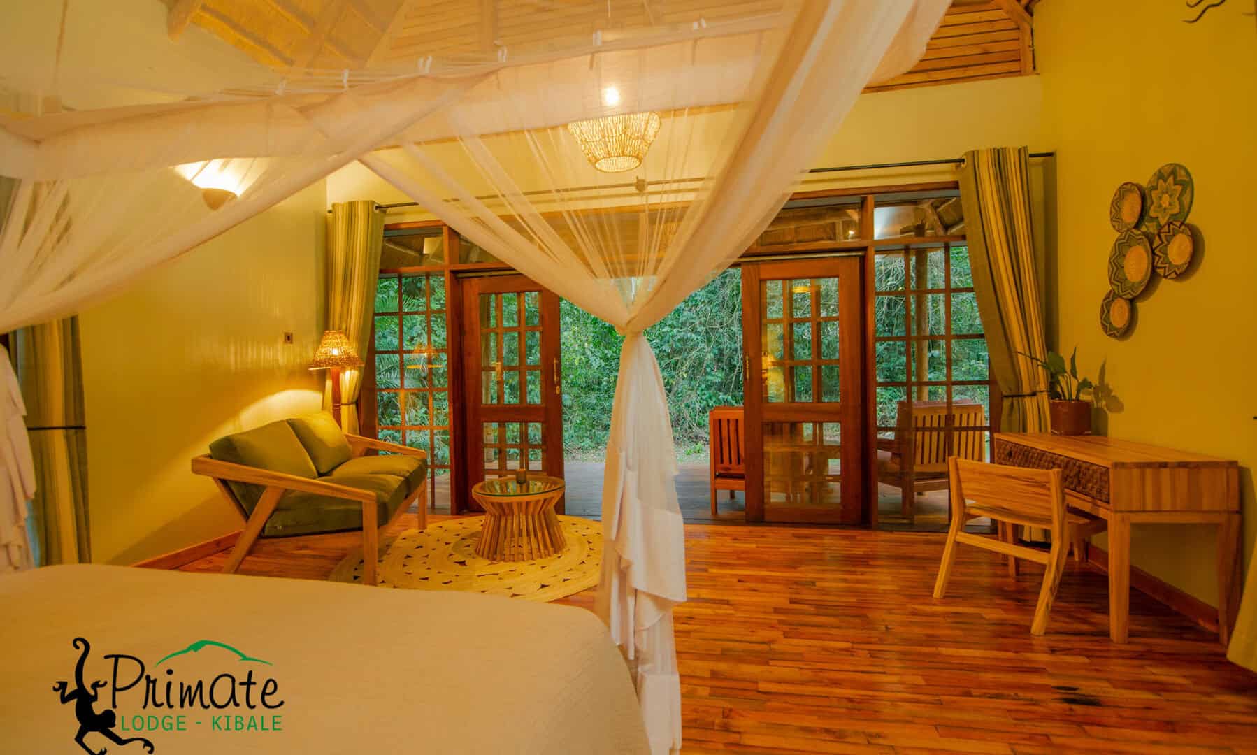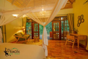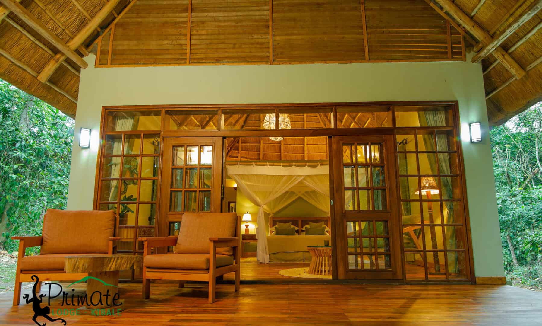 Primate Lodge in Kibale is an exclusive eco-lodge situated in the heart of Kibale Forest National Park. It is surrounded by a lush tropical forest that is home to 13 different species of primates, including the chimpanzees. Privately secluded in the rainforest, this safari lodge offers you a truly authentic jungle experience and is the perfect gateway for tracking the primates in Uganda. Whether you wish a high level of luxury and comfort, rather stay in a midrange cottage or want to bring your own tent, Primate Lodge Kibale is the ideal place for you. Primate Lodge Kibale was awarded with the Chimp Award 2008 for Investment in Eco-Tourism by Uganda Wildlife Authority.