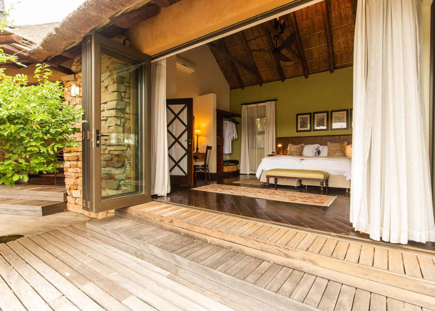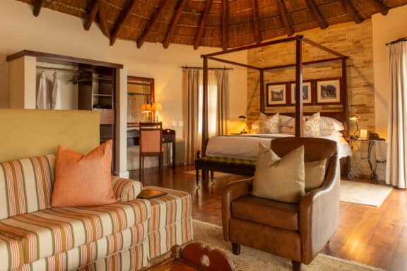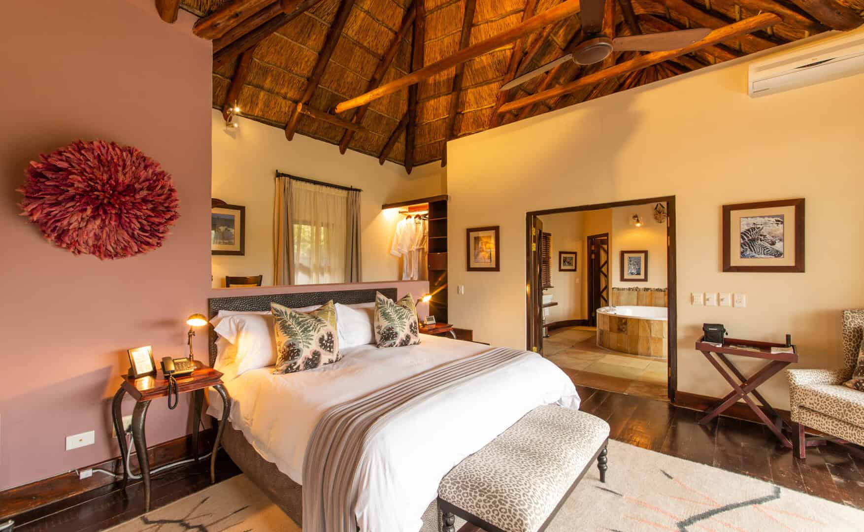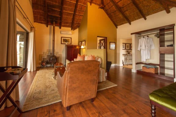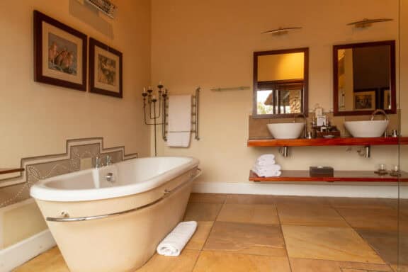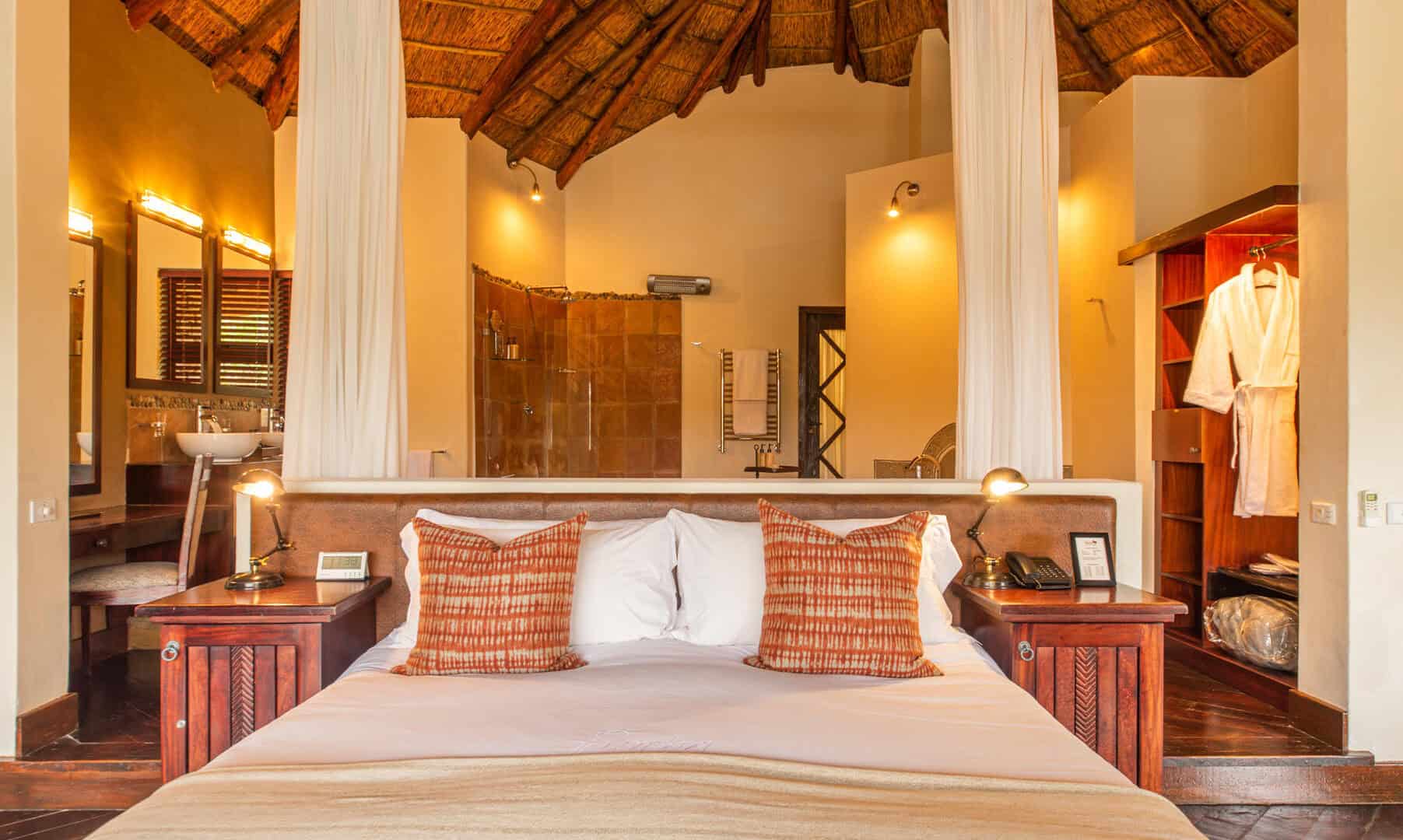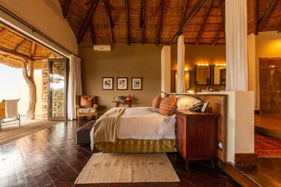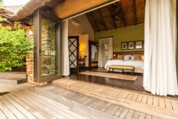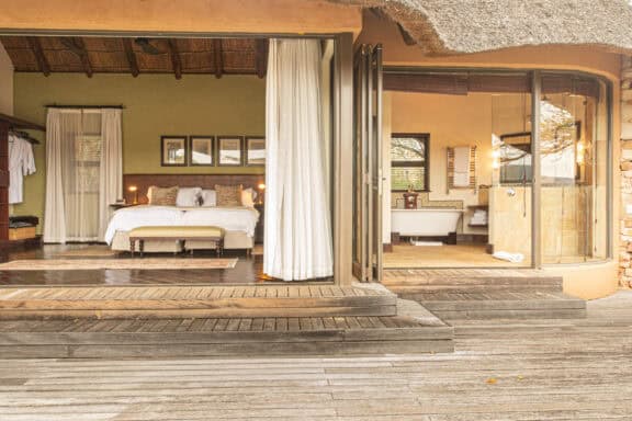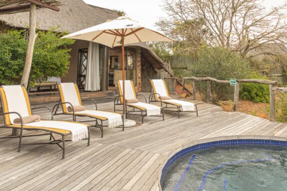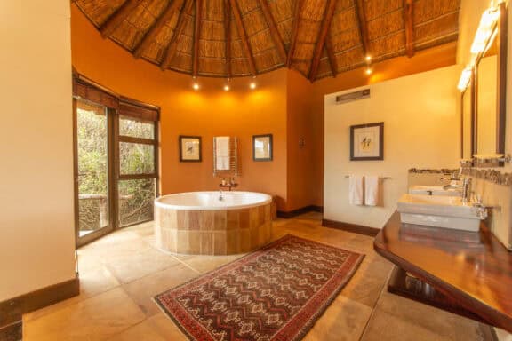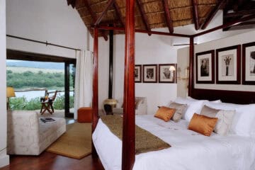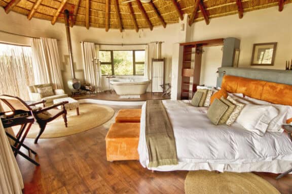 Water Lodge, set amongst dense bush veld overlooking Lake Kariega, offers 12 stone walled, thatched chalets leading off into meandering timber footpaths. All Chalets open onto private game viewing decks boasting plunge pools and outdoor showers. The indulgent bathrooms offer free-standing tubs and double basins, and each room is fitted with an earthenware fireplace