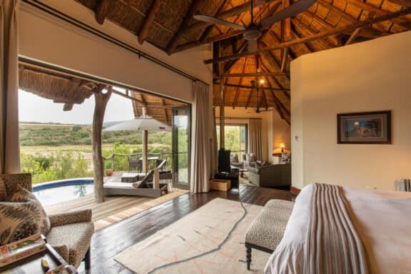 Pumba Private Game Reserve’s very own Water Lodge provides the perfect balance between an idyllic African safari and true 5-star luxury. Guests of the Water Lodge will be privy to unrivalled views over Lake Kariega, complemented by inviting hospitality and a warm atmosphere. All nestled within the malaria-free province of the Eastern Cape, guests can look forward to spotting the Big 5 (leopards, lions, elephants, buffaloes and rhinoceroses) as well as the free-roaming pride of magnificent White Lions, wild dogs, hyenas and cheetahs.