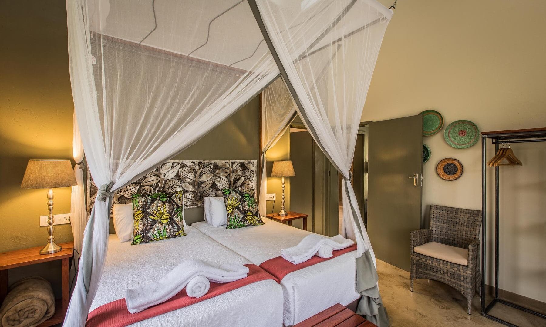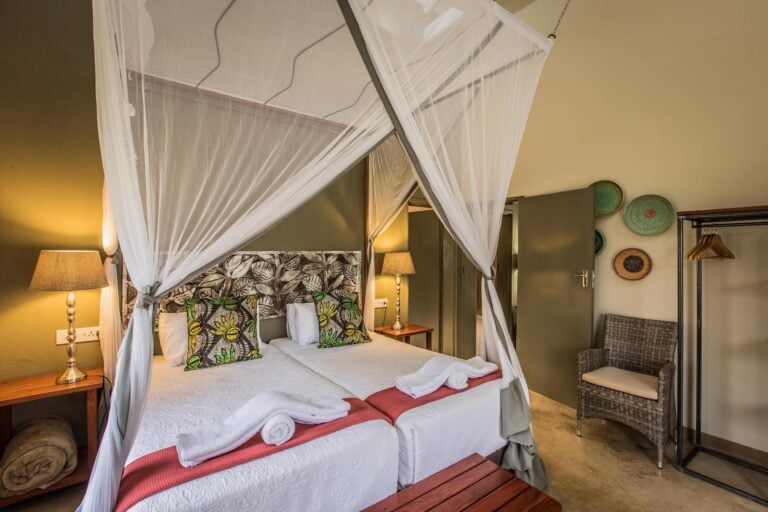 Choose between comfortable Acacia and Mopane chalets, each offering en-suite facilities and tasteful décor inspired by local designs. For the more adventurous, well-equipped campsites are available. The camp’s amenities include a restaurant serving delicious meals, a refreshing swimming pool, and the unique Robins Tower, offering panoramic views of the surrounding landscape.