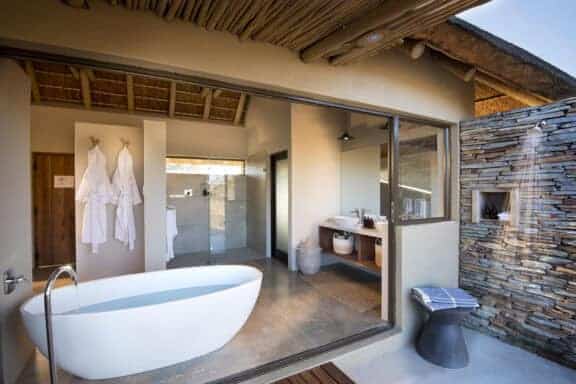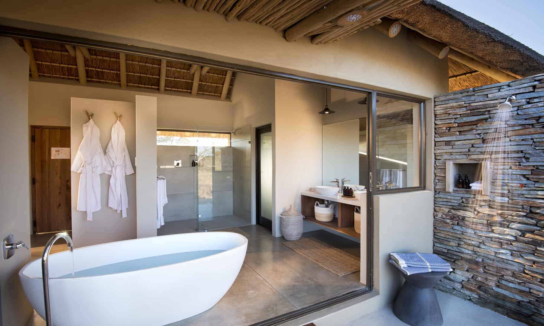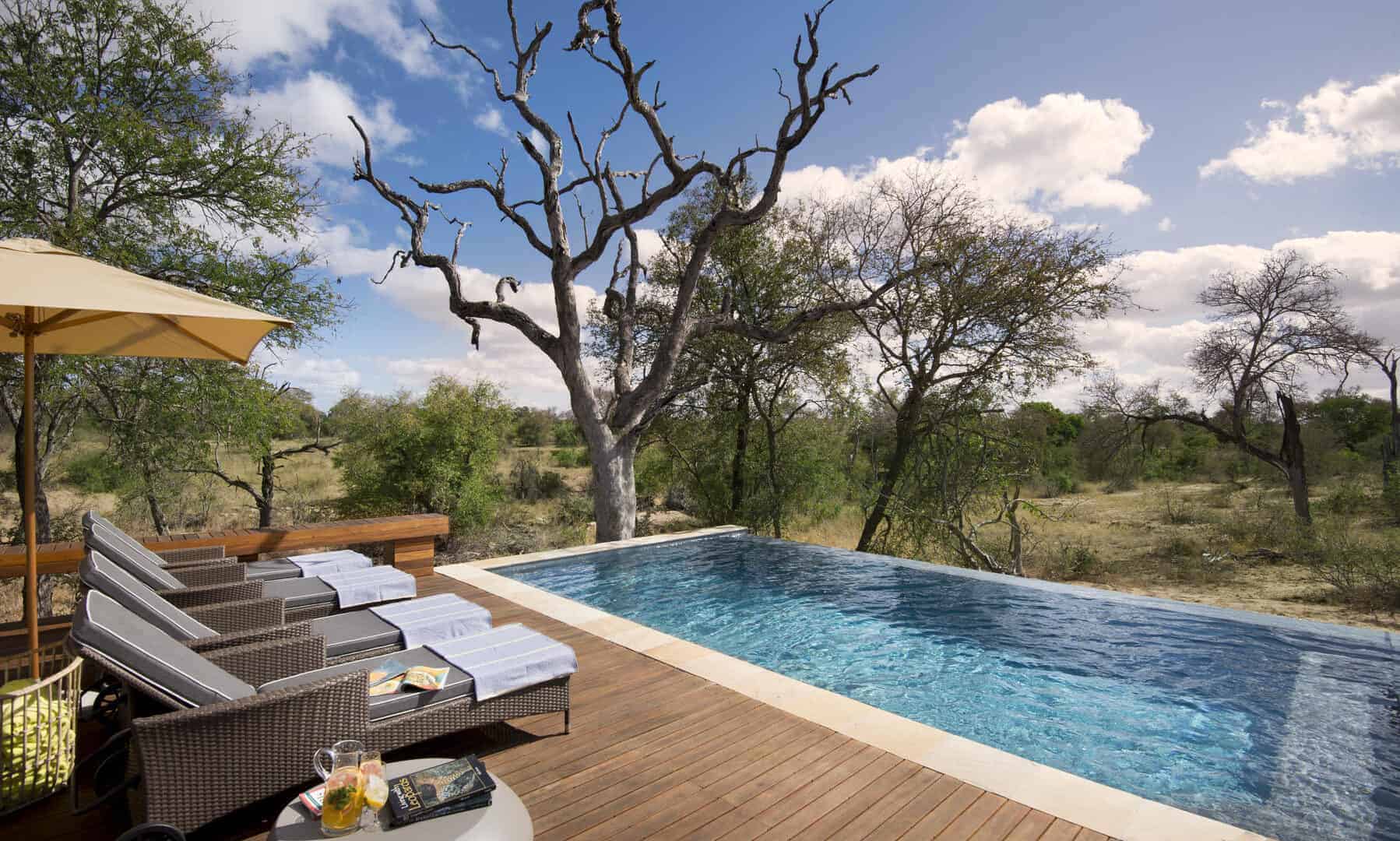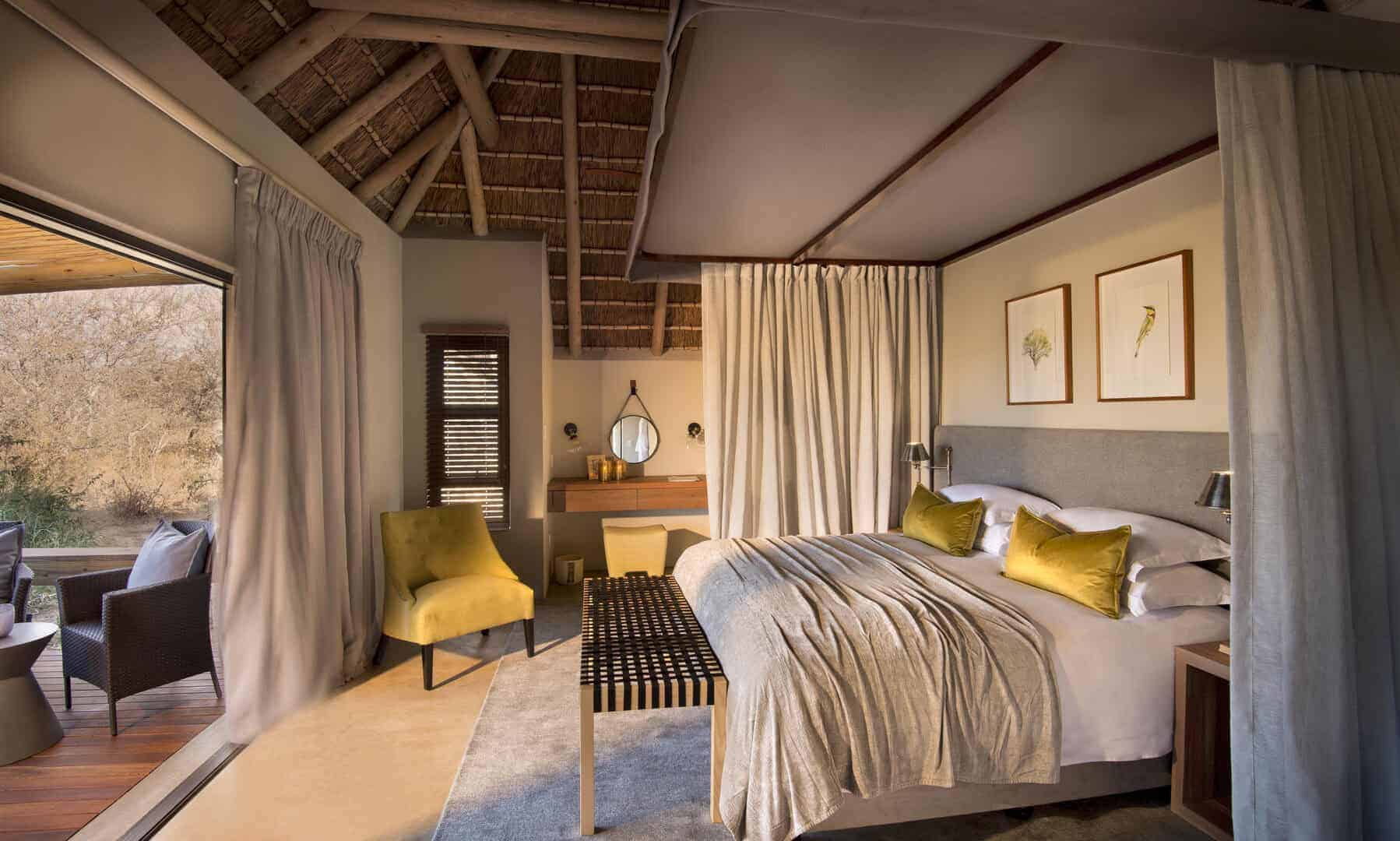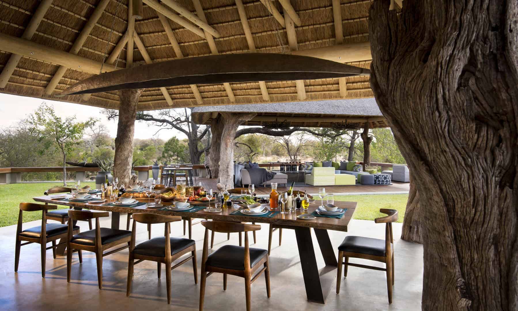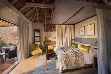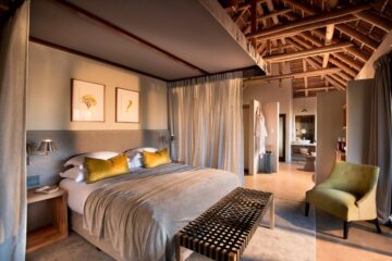 The architecturally designed lodge was strategically positioned along the seasonal Ross River in the Timbavati Game Reserve. The interior designer has created a relaxed ambience with indoor and outdoor guest spaces that segue into each other, and enable both communal and private moments suffused with an authentic bush feel.
