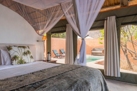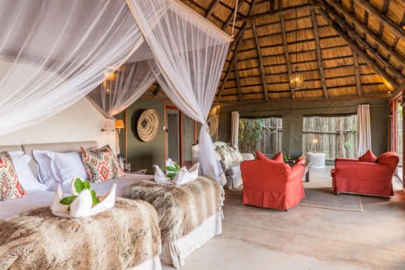We also have 3 Presidential suites on offer for families wanting to be under one roof, with the addition of extra beds and mosquito nets for the comfort of the entire family. These suites have been designed as a large open plan home-away-from-home and befitting of the wilderness surroundings.