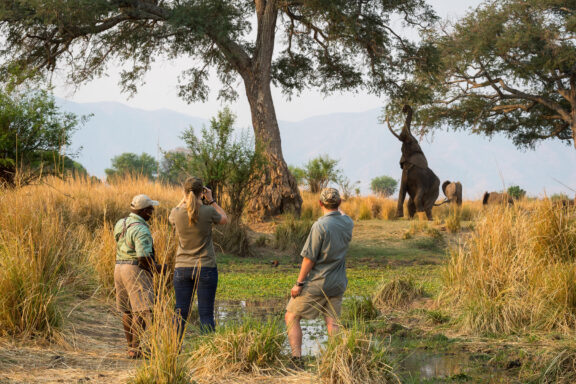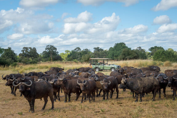 Open 4×4 vehicles, motorised pontoon boats, canoes and good old safari boots facilitate the wildlife viewing.