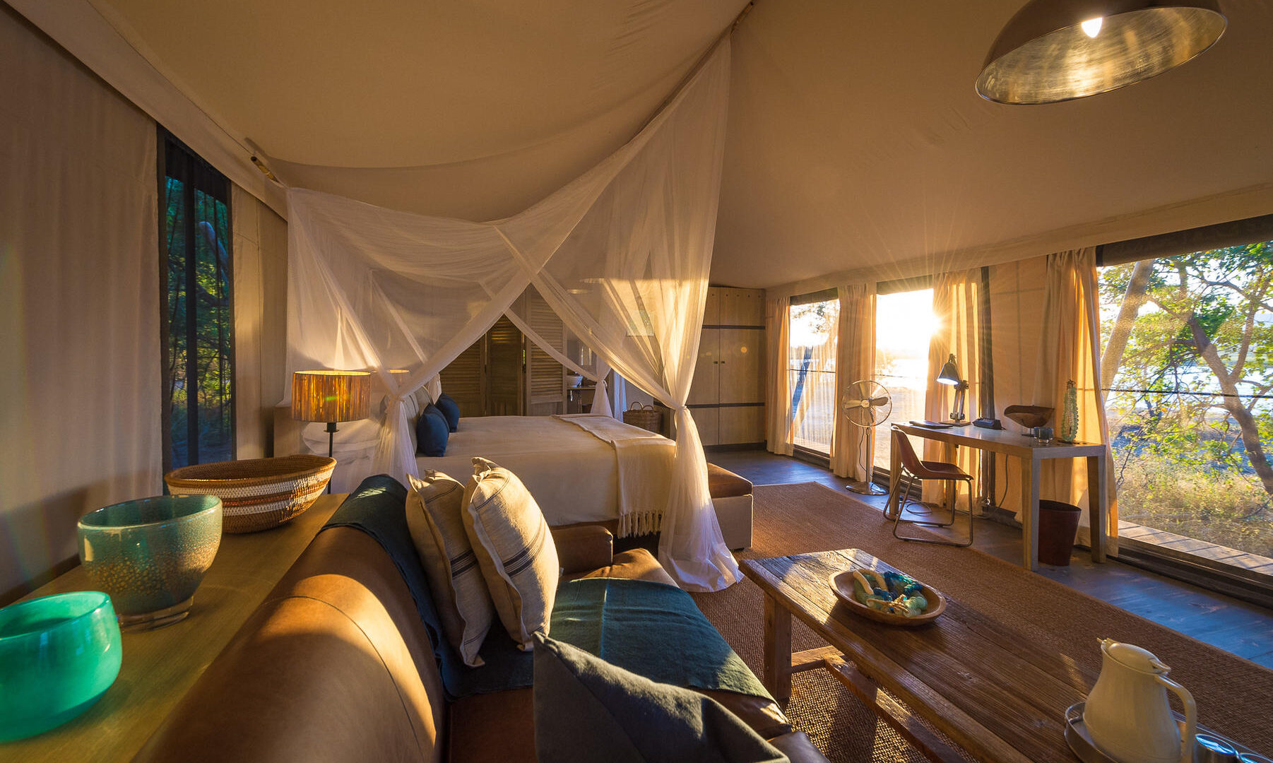 Ten spacious and beautifully decorated en-suite tents, including two family rooms, lie beneath the ana trees, best-beloved of local elephant for their nutritious seeds.