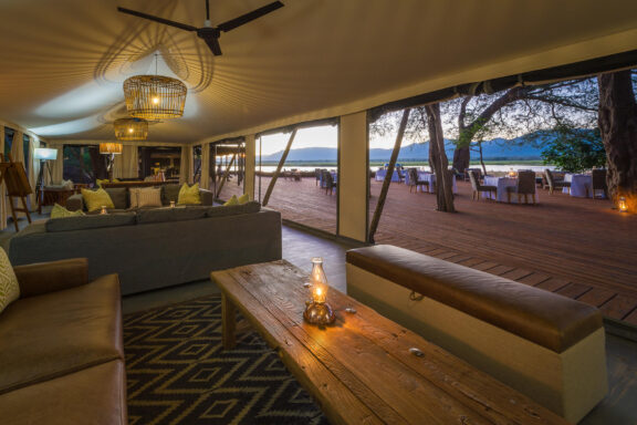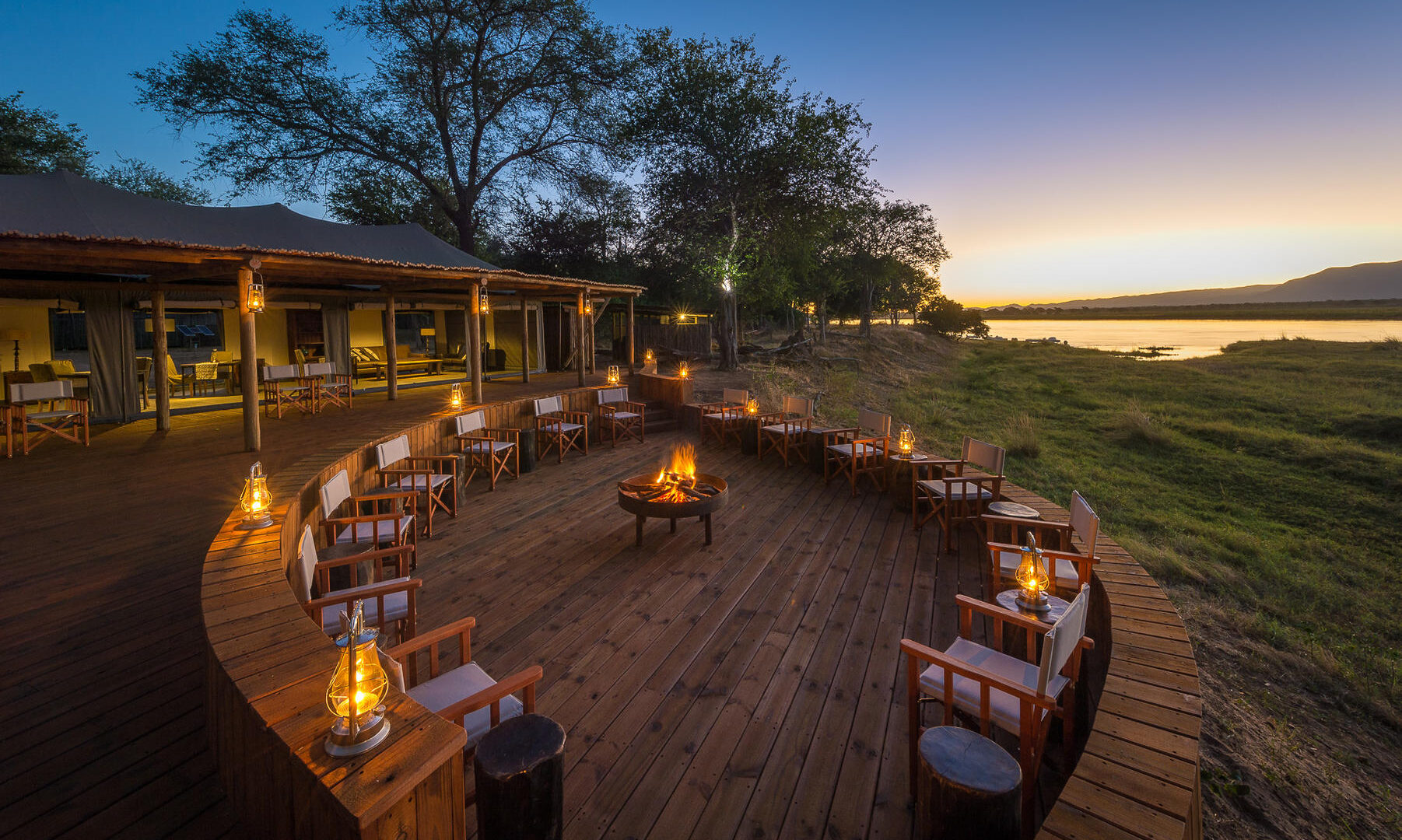 The camp’s central living space includes an inviting fire pit for pleasant evenings beneath the African night skies.