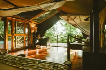 Situated upon the elevated banks of the Great Rufiji River, Rufiji River Camp is one of the original and most atmospheric tented hideaways in Southern Tanzania. This intimate property has a traditional, unfenced design, ensuring you remain immersed in the wilderness, with the sounds of hippos and birdlife providing a constant, soothing backdrop.
