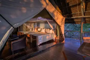 Situated upon the elevated banks of the Great Rufiji River, Rufiji River Camp is one of the original and most atmospheric tented hideaways in Southern Tanzania. This intimate property has a traditional, unfenced design, ensuring you remain immersed in the wilderness, with the sounds of hippos and birdlife providing a constant, soothing backdrop.